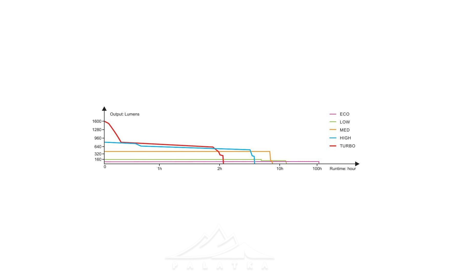 - Turbo: яскравість - 1600 lm, час роботи - 2 г 50 хв, дальність - 283 м