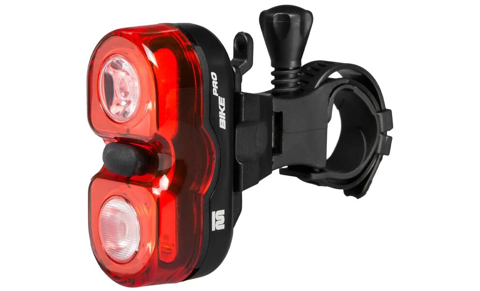 - Швидке кріплення на підсідельний штир + регулювання кута — можна точно виставити напрямок, щоб ліхтар не освітлював небо.