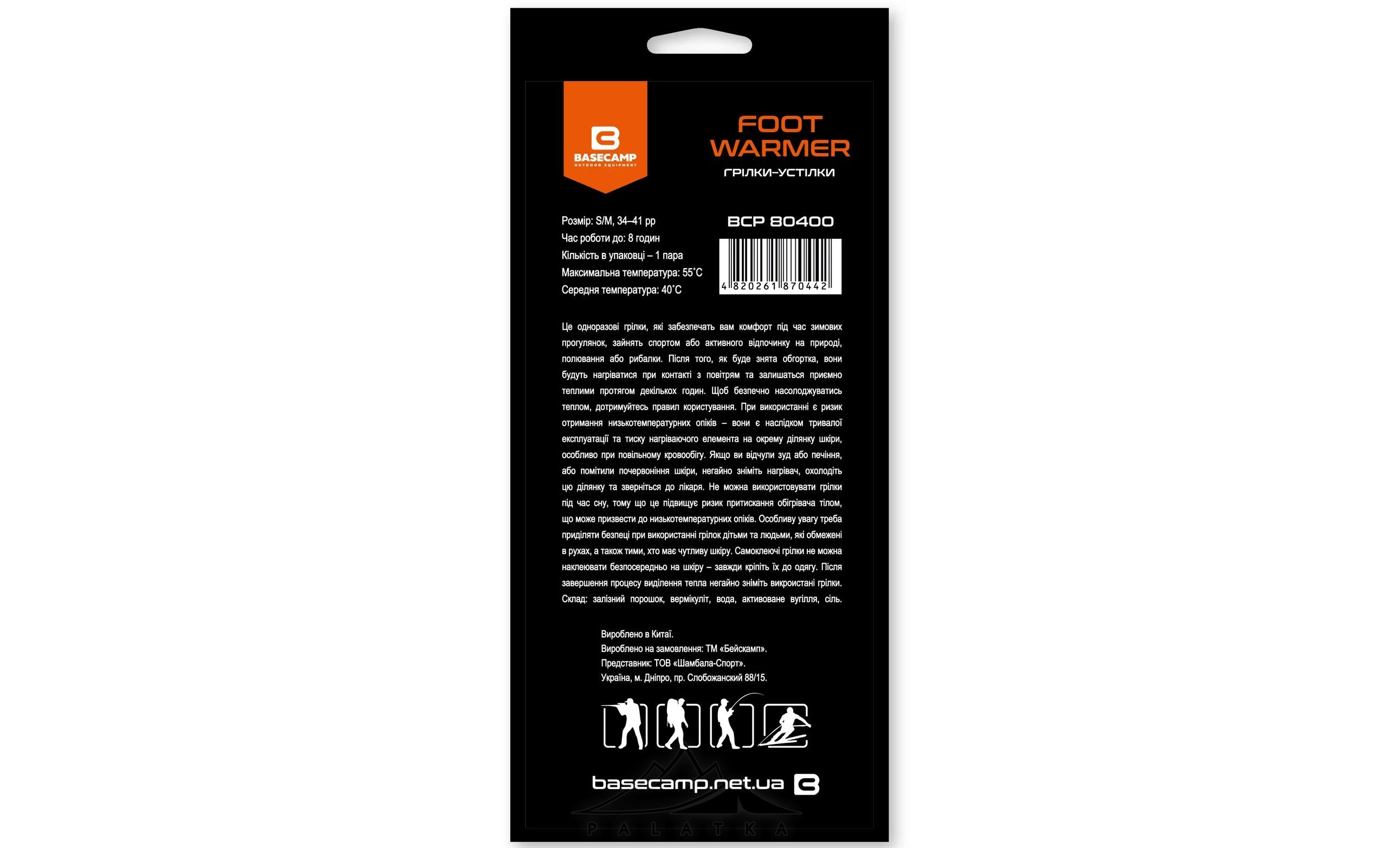Одноразові грілки-устілки BaseCamp Foot Warmer - S/M, (34-41), 2 шт.