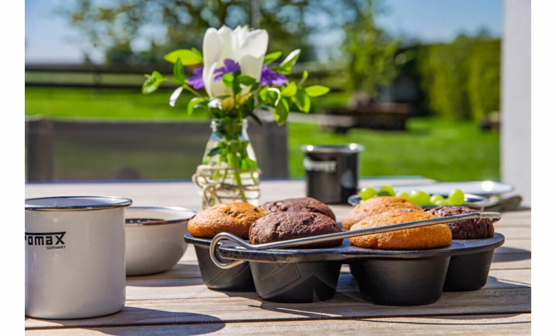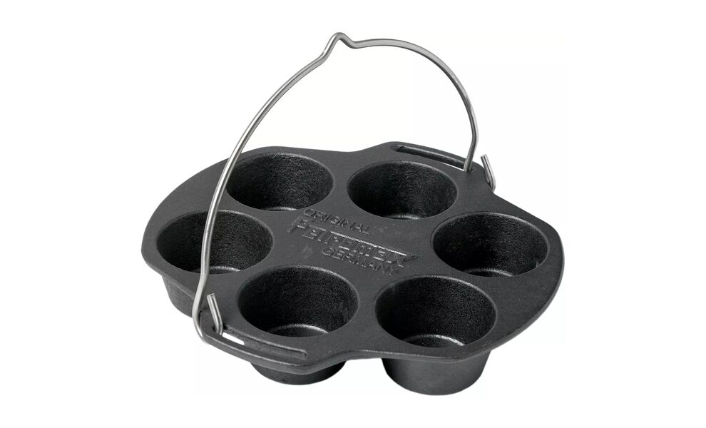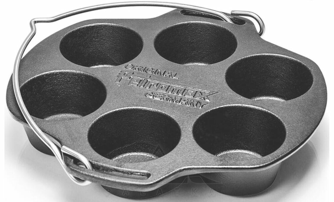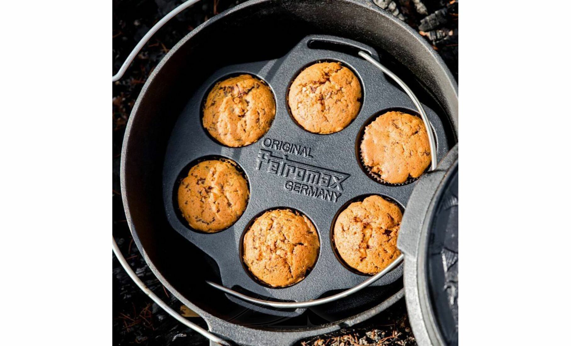 Petromax Muffin Tin — чавунна форма для кексів, або порційних страв. Підходить для приготування над багаттям, мангалі, домашній плиті або духовці.