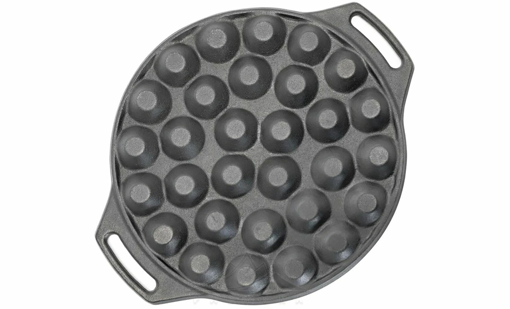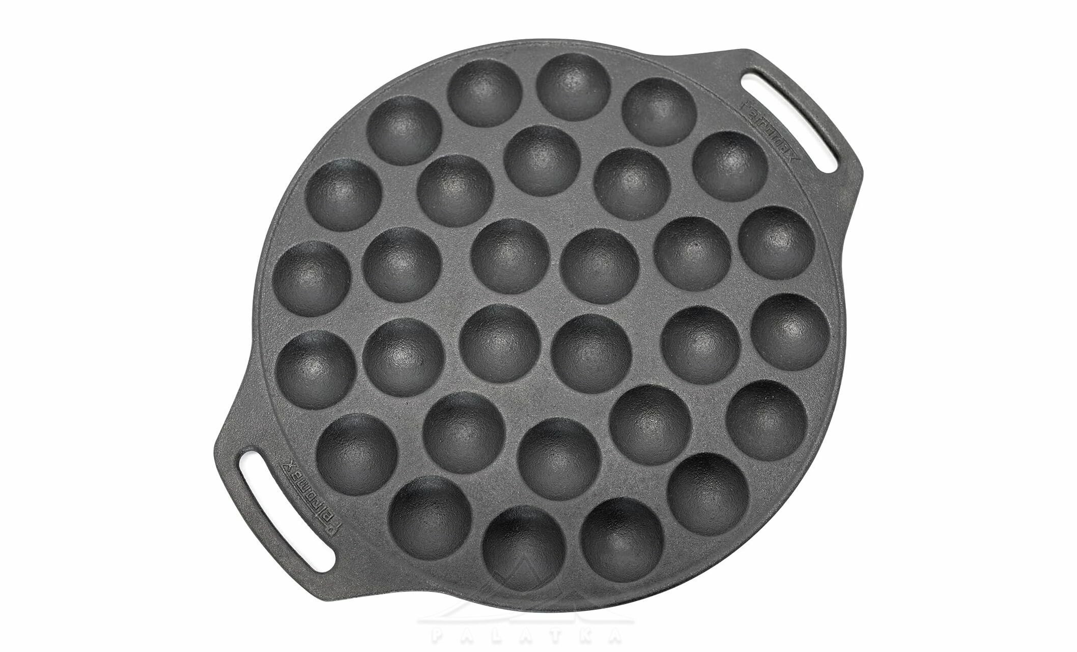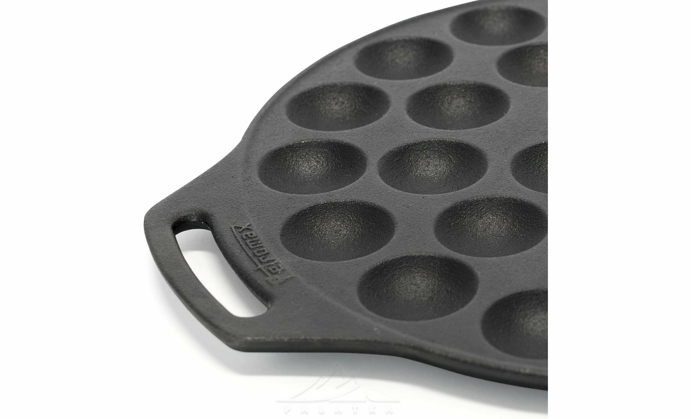 Petromax Poffertjes Pan — низькопрофільна чавунна форма для голландських міні-оладок - поффертьє, невеликих десертів, та порційних страв. Підходить для приготування над багаттям, мангалі, домашній плиті або духовці.