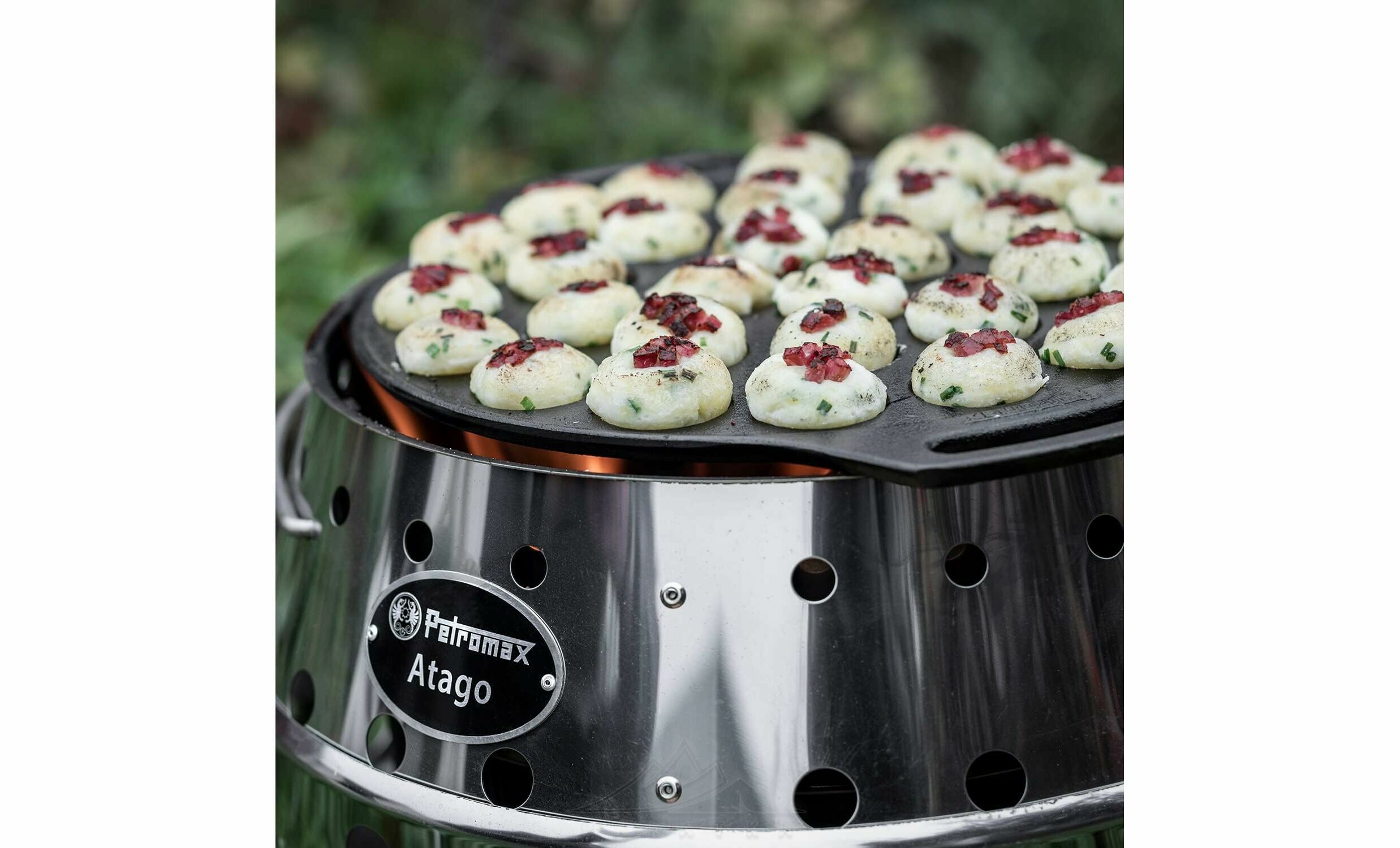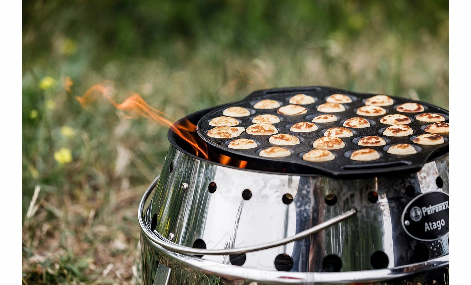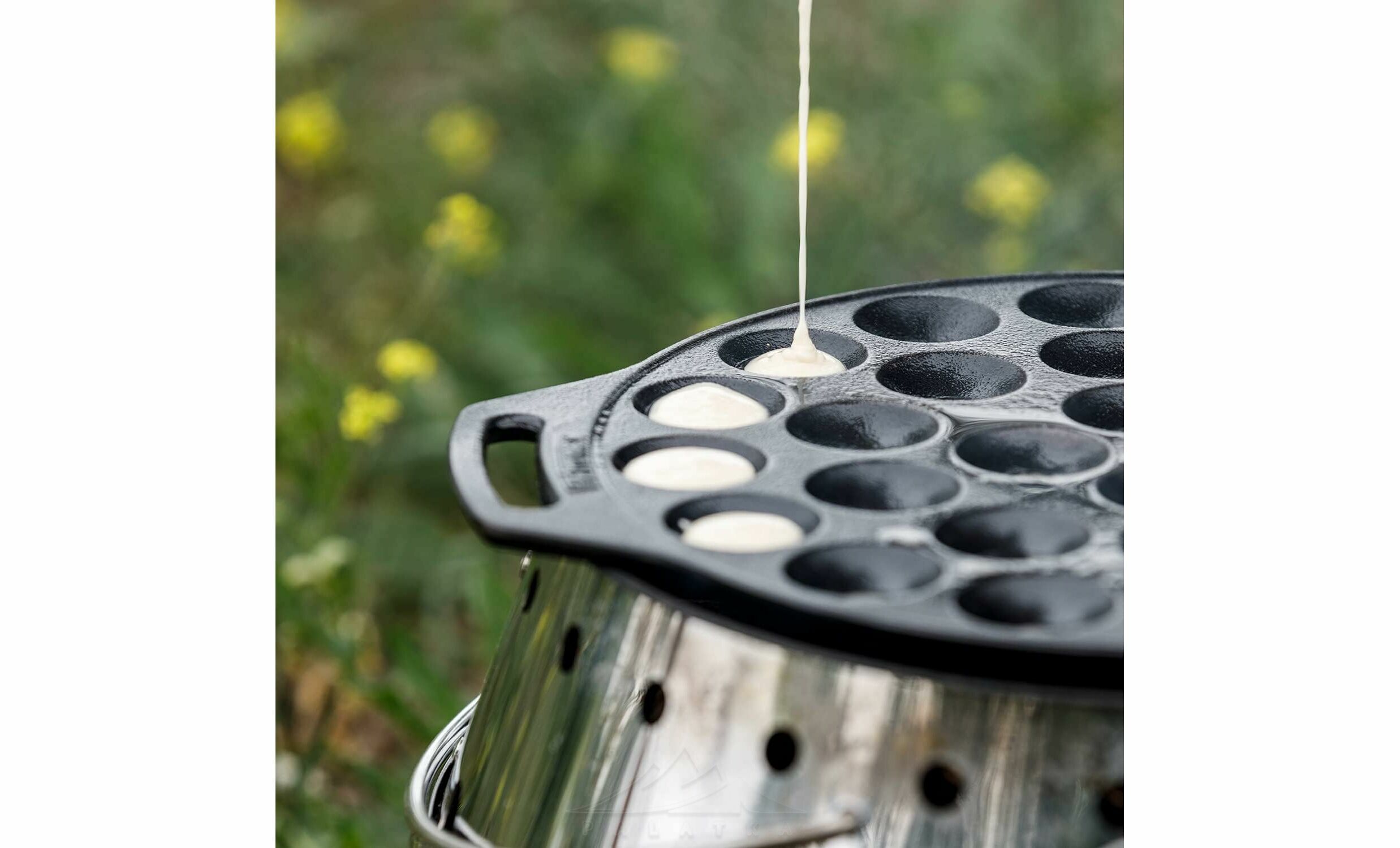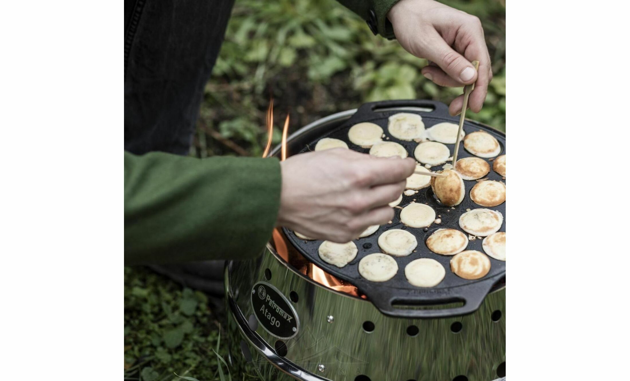 Petromax Poffertjes Pan — низькопрофільна чавунна форма для голландських міні-оладок - поффертьє, невеликих десертів, та порційних страв. Підходить для приготування над багаттям, мангалі, домашній плиті або духовці.