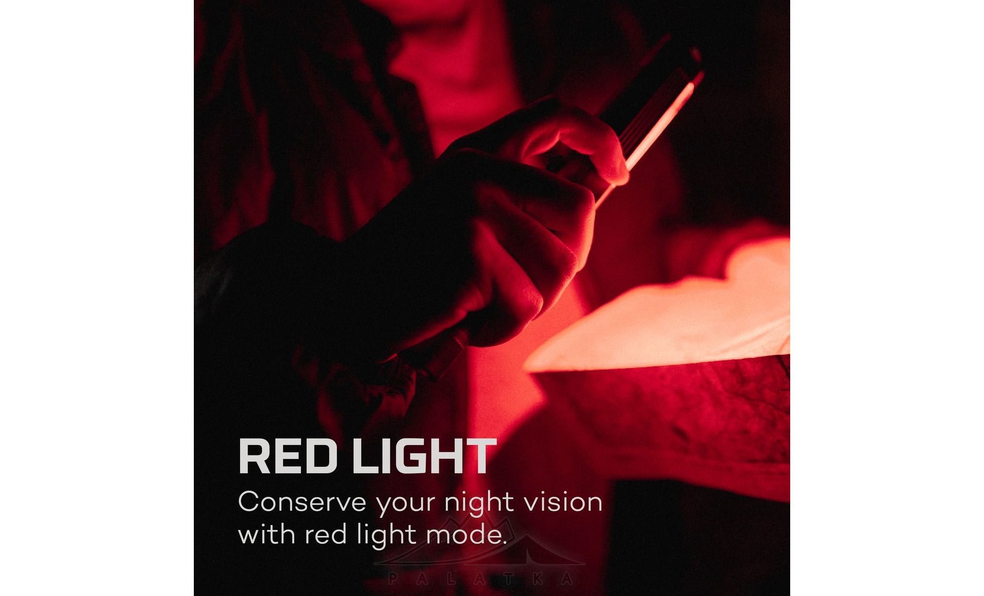 - Працює у 7 режимах освітлення: 2 режими білого світла, 2 режими білого ближнього світла, 2 режими червоного ближнього світла та червоний строб.