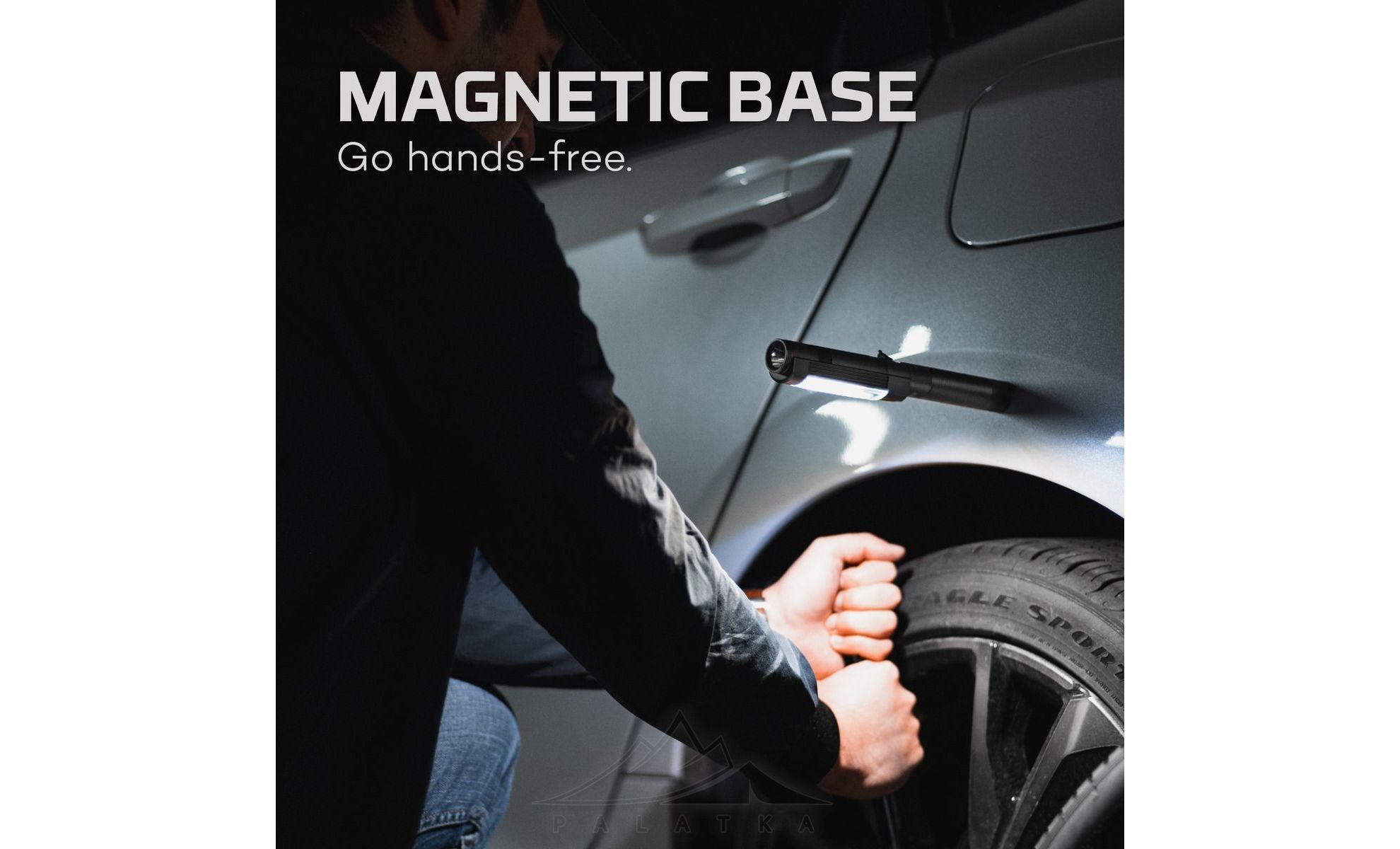 - Магнітна основа для зручного освітлення без використання рук.