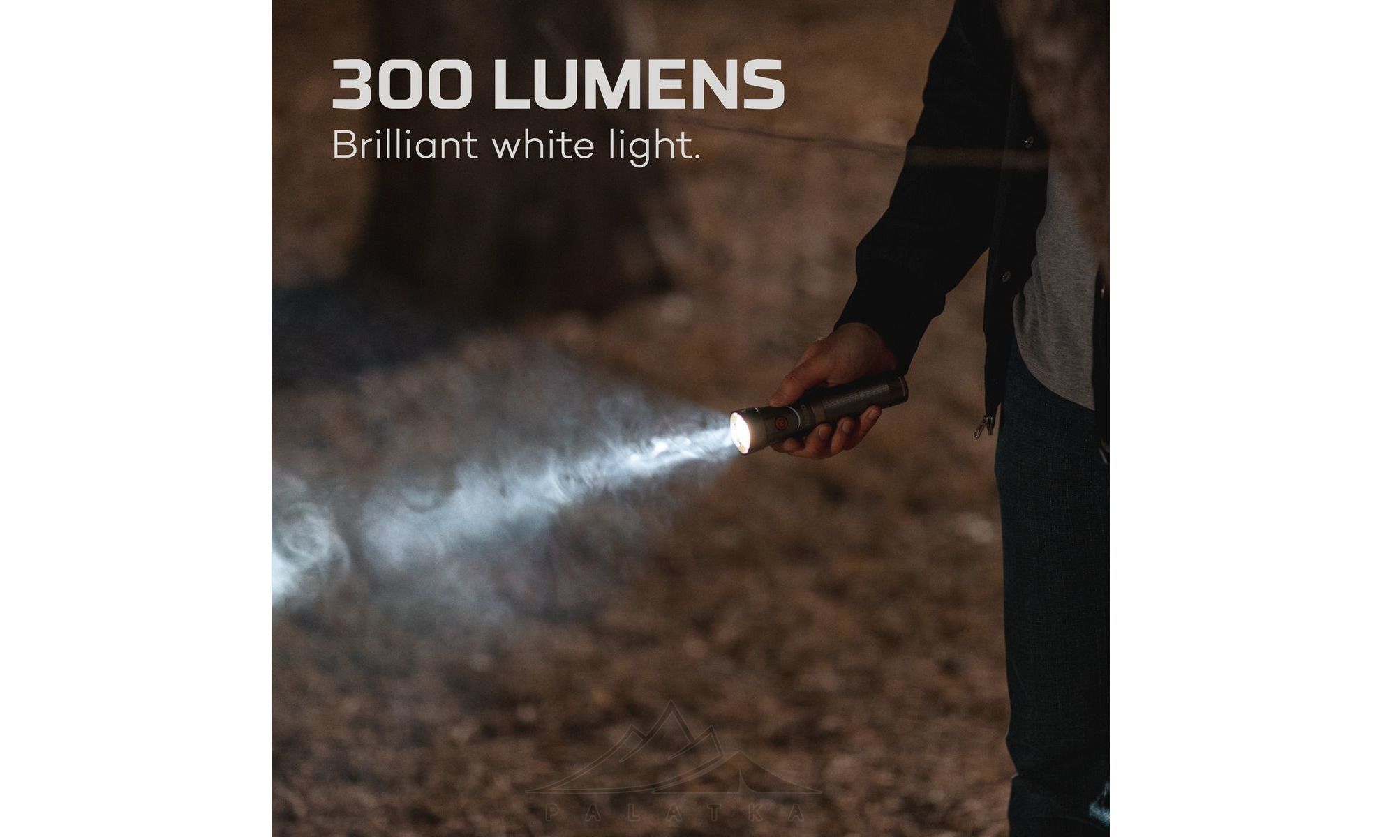 - Flashlight High (біле світло): яскравість - 300 lm, час роботи - 5 г, дальність - 120 м