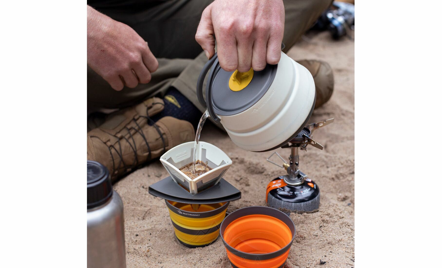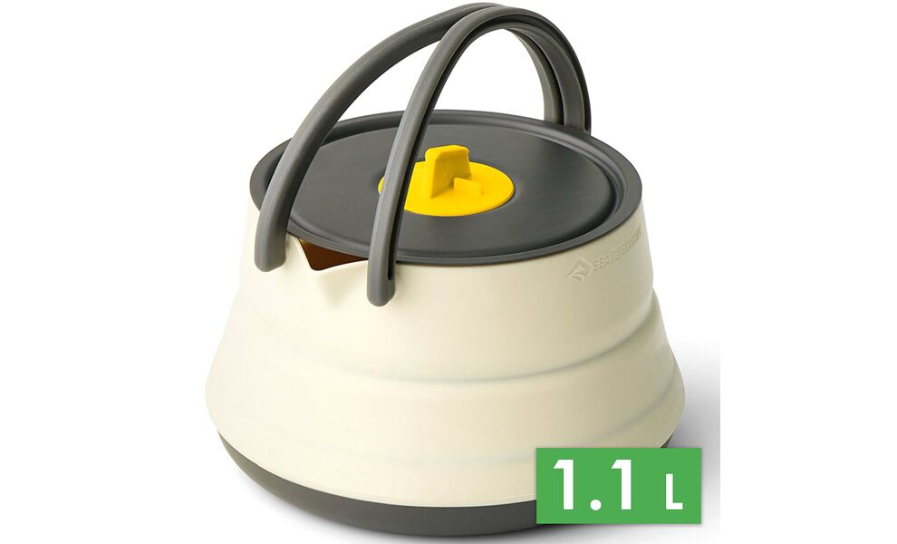 Sea to Summit Frontier UL Collapsible Kettle — ультралегкий складний чайник посуду з харчового силікону з анодованим алюмінієвим дном, розроблений для мандрівників і туристів, які прагнуть мінімізувати вагу спорядження без втрати функціональності. Ідеально підходить для кип’ятіння води, приготування страв та використання з туристичними пальниками.