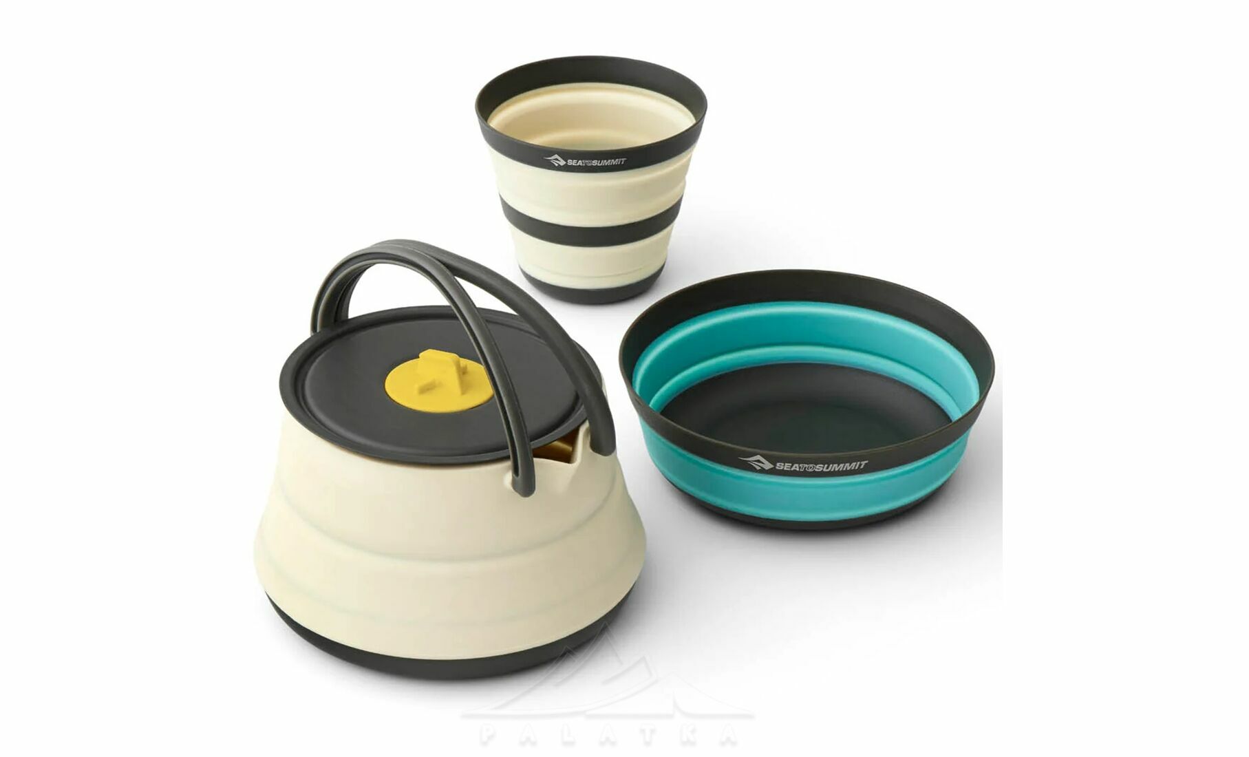 Sea to Summit Frontier UL Collapsible Kettle Cook Set — ультралегкий набір складного посуду з харчового силікону, розрахований на 1 особу. Може зручно поміститись у вашому рюкзаку, тому підійде для використання будь-де — у піших походах, подорожах, кемпінгу або пікніку.