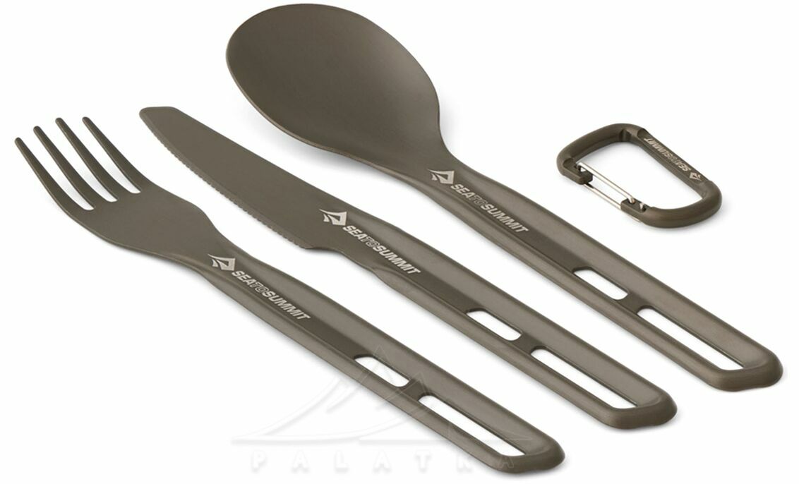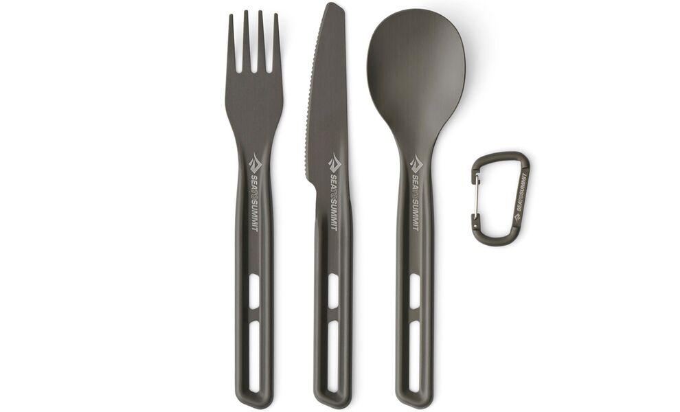 Туристичний набір столових приборів з карабіном Sea to Summit Frontier - 3 предмети (виделка, ложка, ніж), анодований алюміній