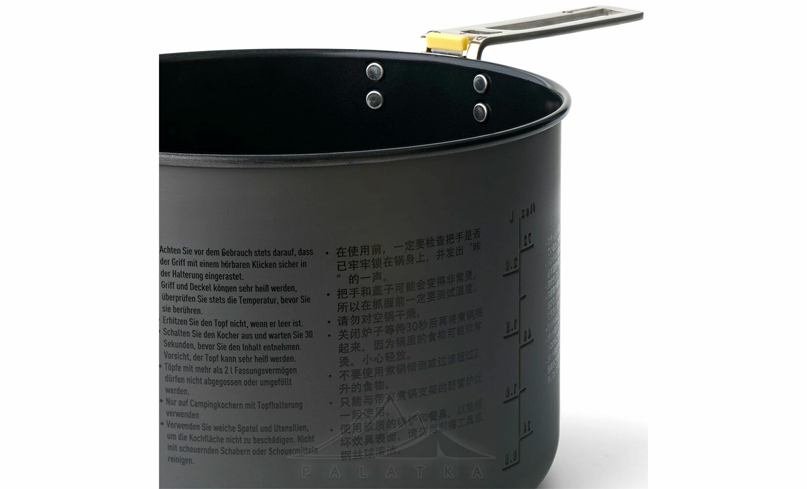- Збільшений радіус заокруглення між дном і стінками полегшує перемішування та очищення, а також ідеально підходить для використання з посудом Sea to Summit.