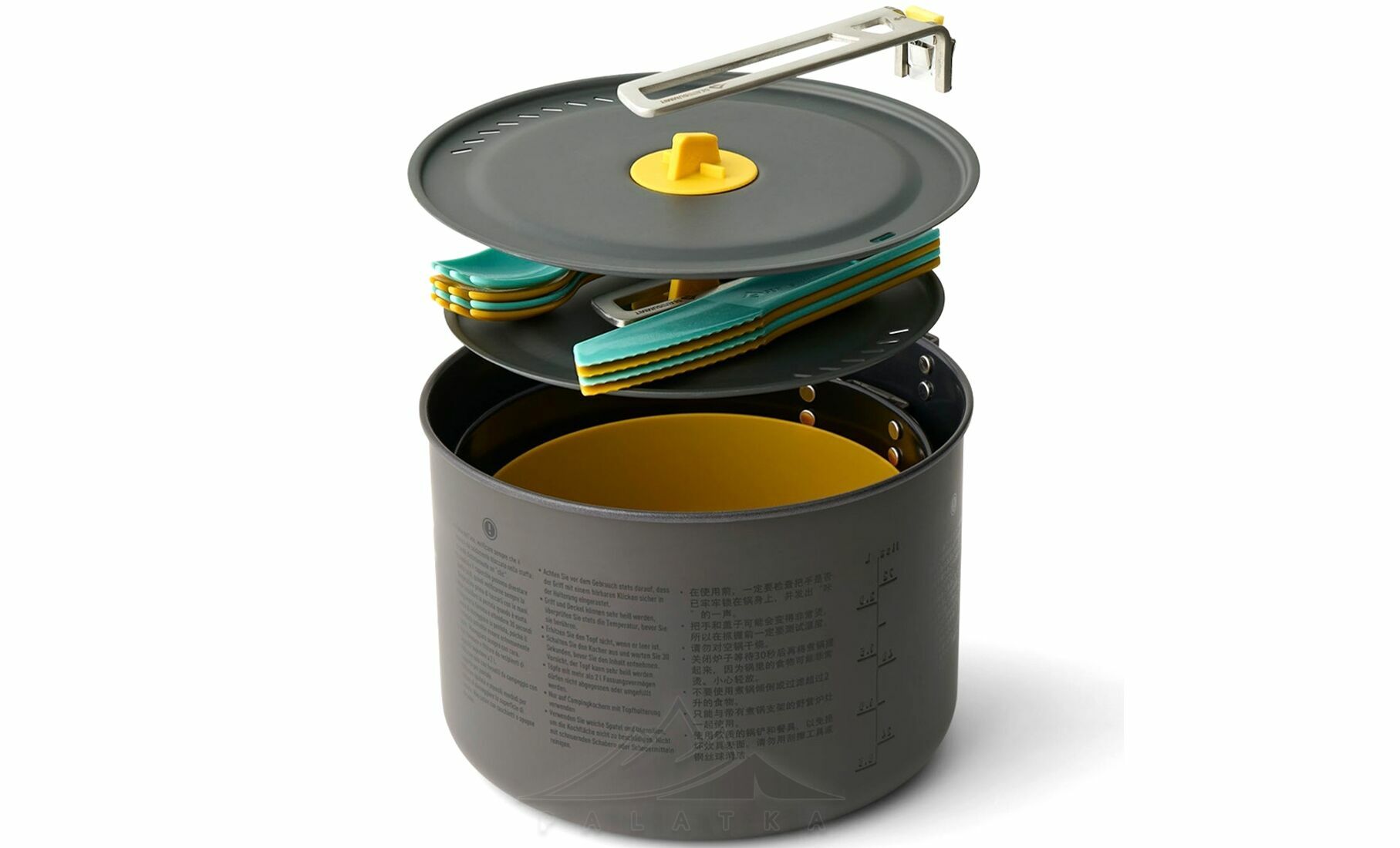 Sea to Summit Frontier UL Two Pot Cook Set — легкий та функціональний набір посуду, розрахований на 4 особи. Відмінно підійде для приготування та вживання їжі в похідних умовах, під час кемпінгу, та відпочинку на природі.