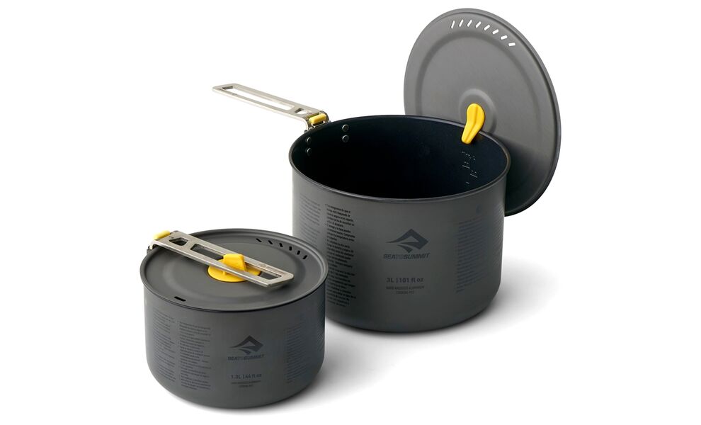 Sea to Summit Frontier UL — набір ультралегких каструль з анодованого алюмінію, що мають антипригарне покриття і знімну ручку. Відмінно підійдуть для приготування їжі в похідних умовах, під час кемпінгу, та відпочинку на природі.