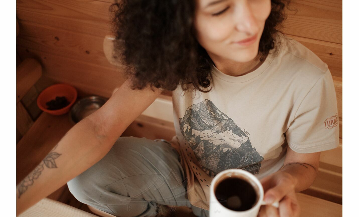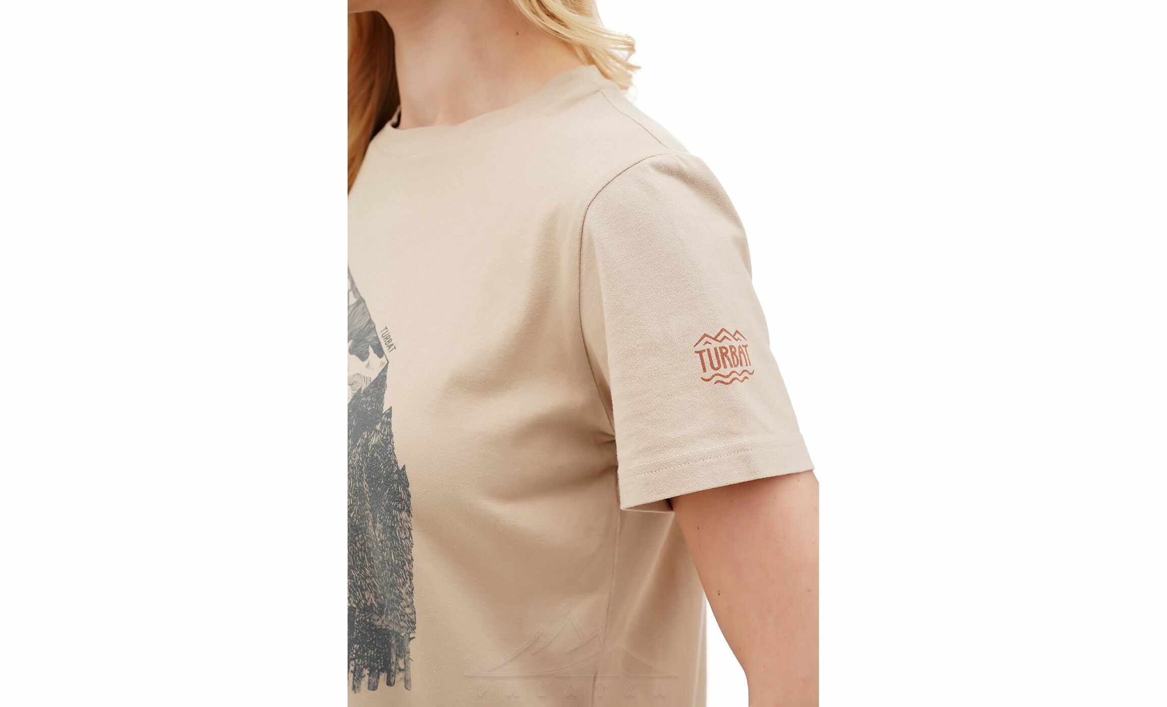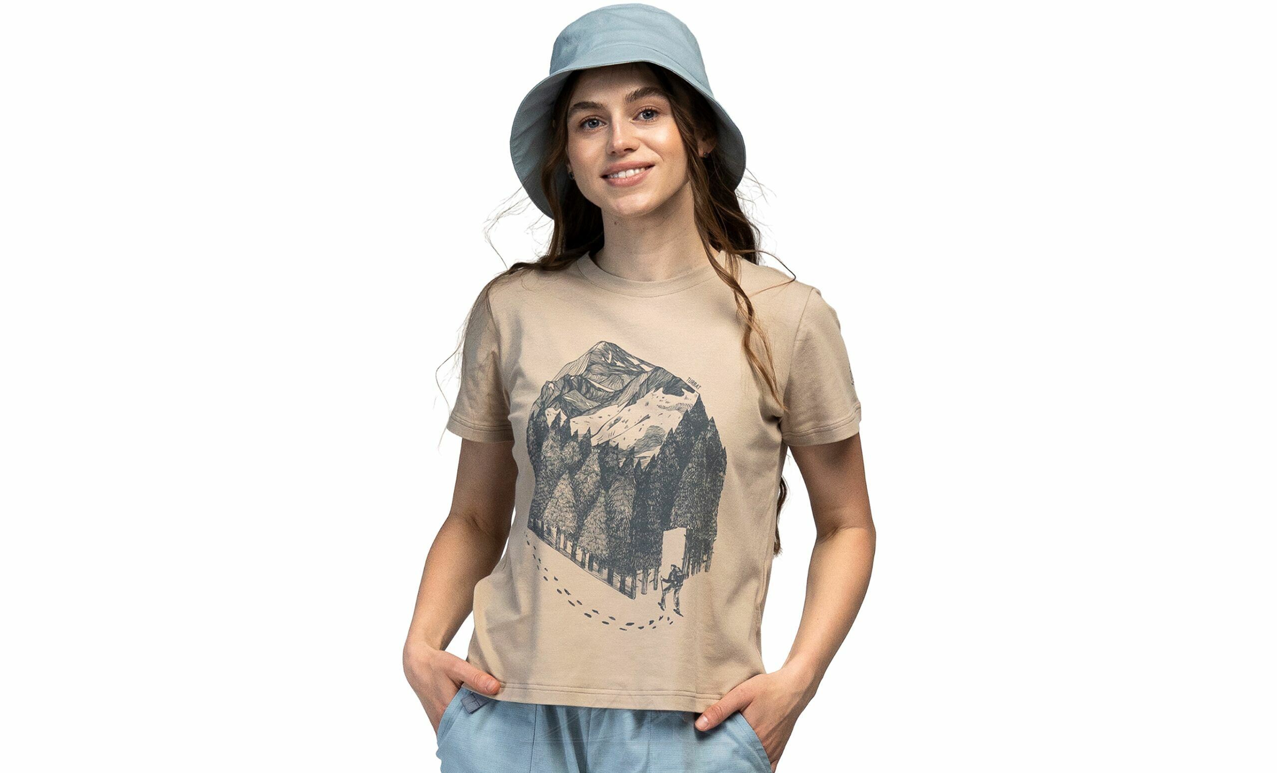 Turbat Home — жіноча бавовняна футболка з атмосферним принтом, натхненним горами. Чудово підходить для міста та щоденного носіння.