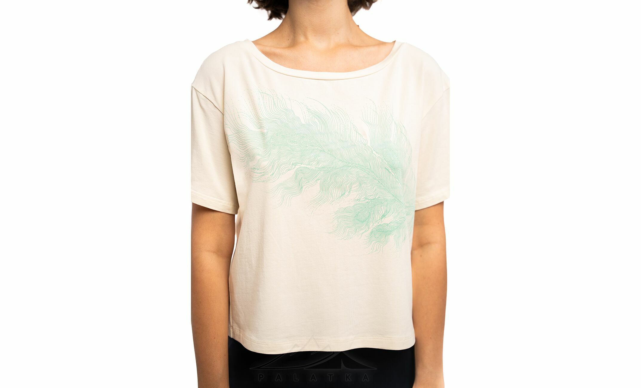 Turbat Misool — жіноча футболка з м’якої органічної бавовни з оригінальним принтом, яка дарує комфорт і відчуття свіжості навіть у спеку. Ідеальна для літніх мандрів, активного відпочинку та щоденного носіння.