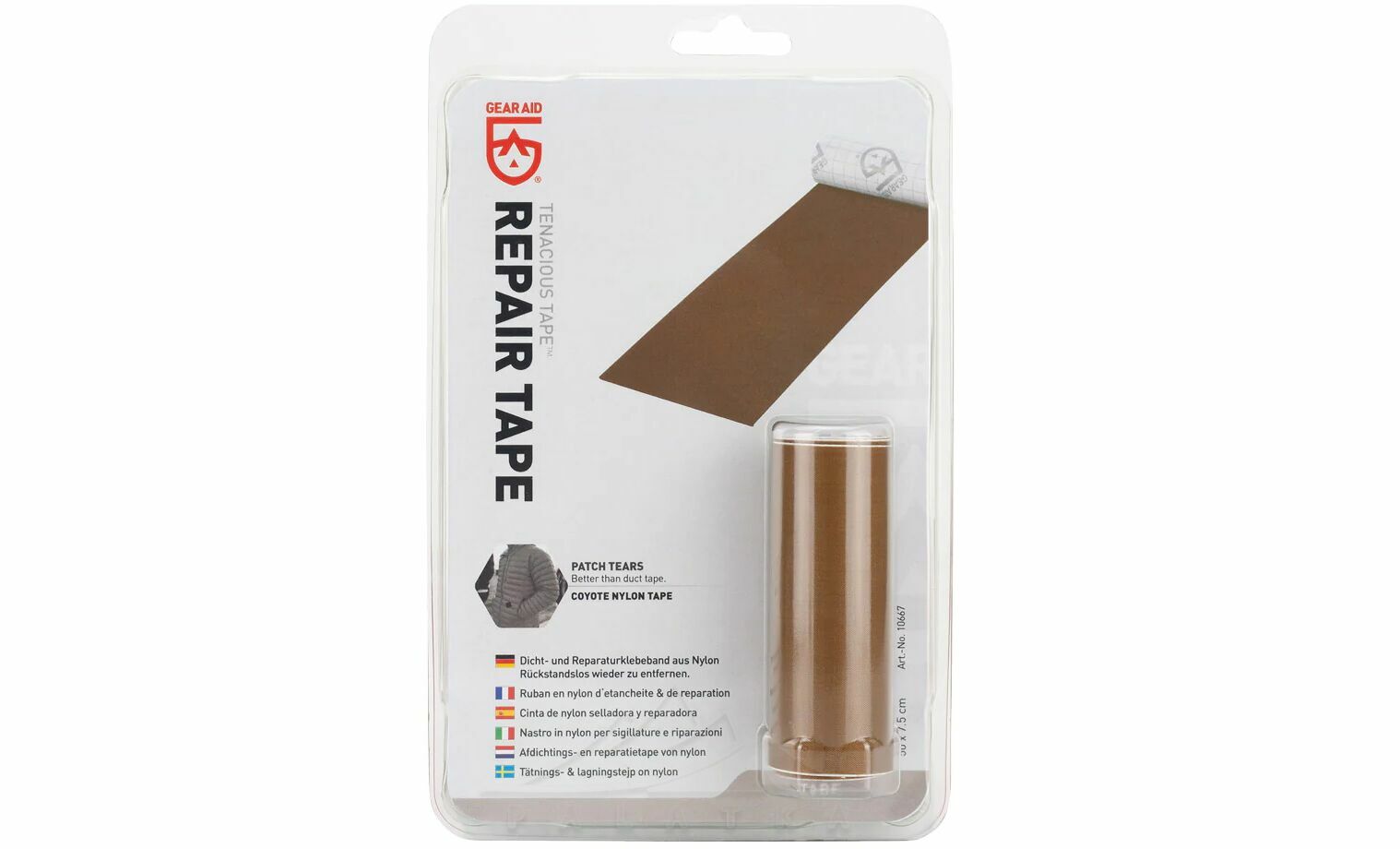 Gear Aid TENACIOUS TAPE™ Repair Tape — універсальна самоклеюча латка з липким шаром, що підійде для швидкого ремонту будь-якого спорядження та одягу.