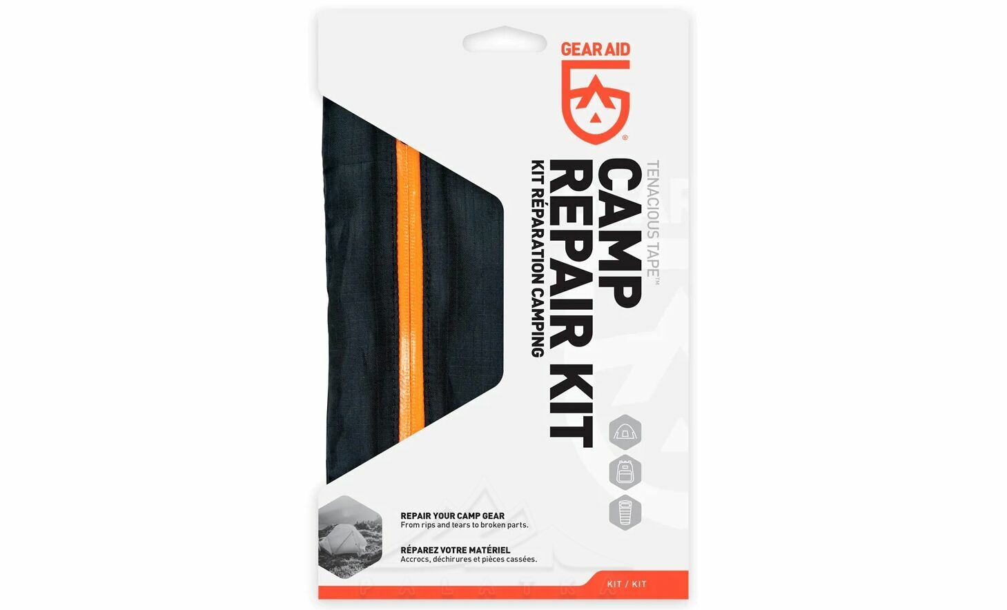Gear Aid TENACIOUS TAPE™ Camp Repair Kit — розширений набір запчастин та універсальних латок з липким шаром для ремонту різноманітного спорядження під час кемпінгу.