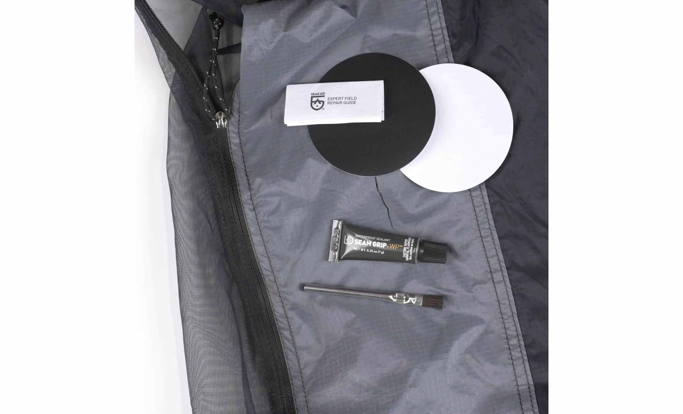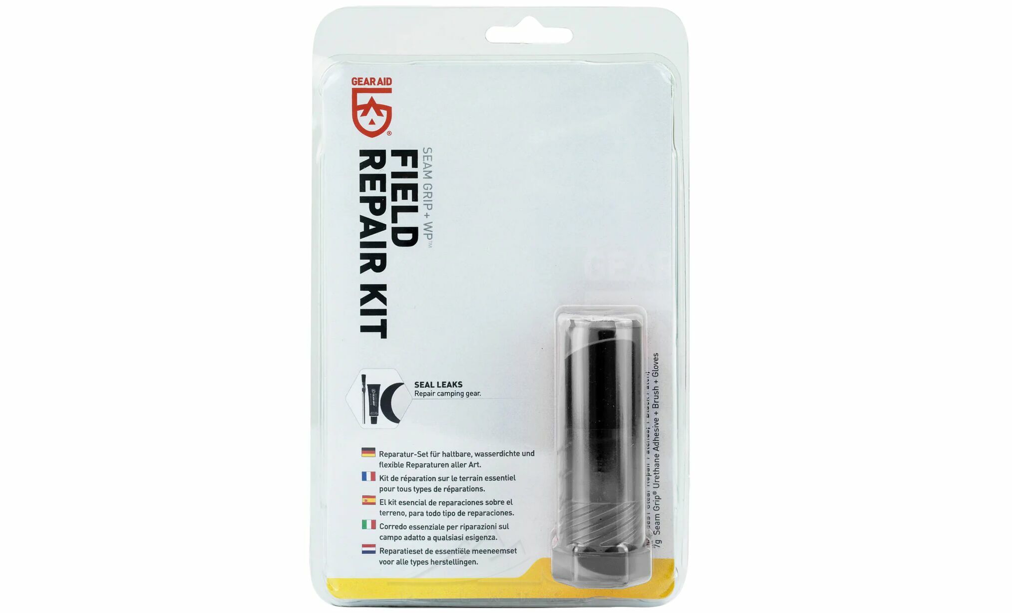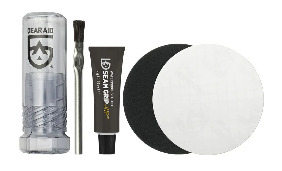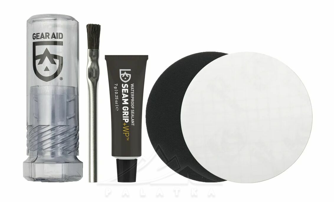 Gear Aid SEAM GRIP+WP™ Repair Kit — універсальний ремкомплект для ремонту порізів, розривів та проколів у тканинах аутдор-спорядження, включаючи надувні килимки, матраси, спальники, намети, тенти тощо.