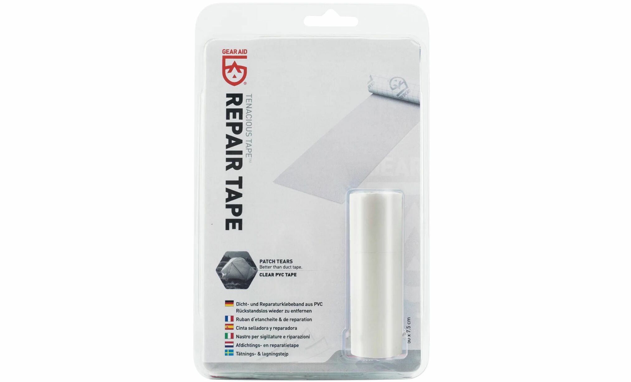 Gear Aid TENACIOUS TAPE™ Repair Tape — універсальна самоклеюча латка з липким шаром, що підійде для швидкого ремонту будь-якого спорядження та одягу.