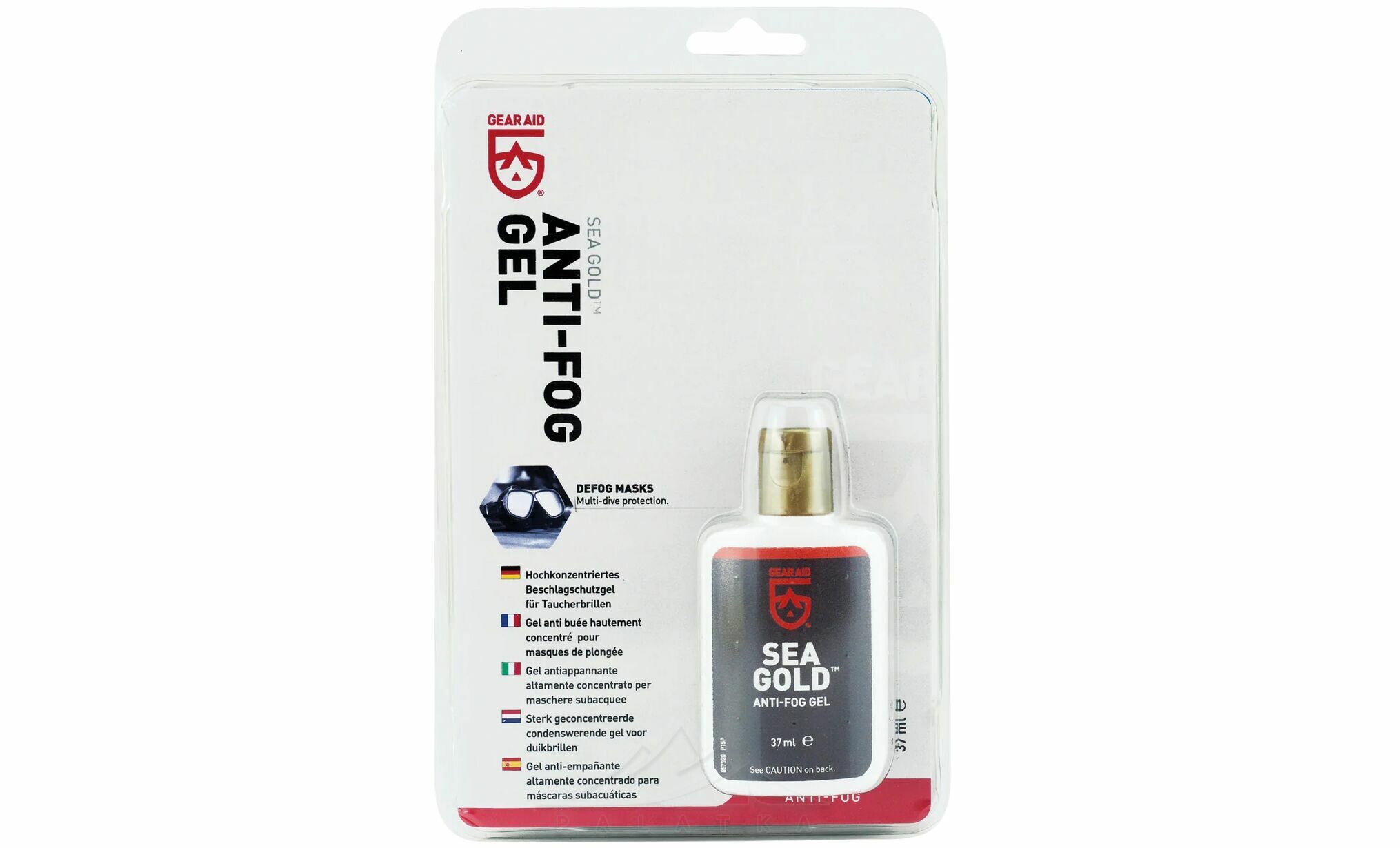 Gear Aid Sea Gold™ Anti-Fog Gel — висококонцентрований гель проти запотівання для масок для SCUBA-дайвінгу та масок для снорклінгу, який залишає довготривале захисне покриття та ідеально підходить для занурень у холодну воду та багаторазових занурень.