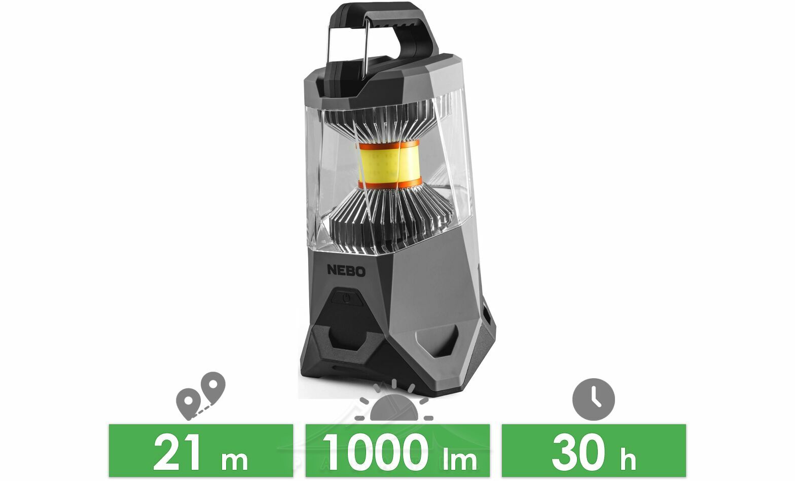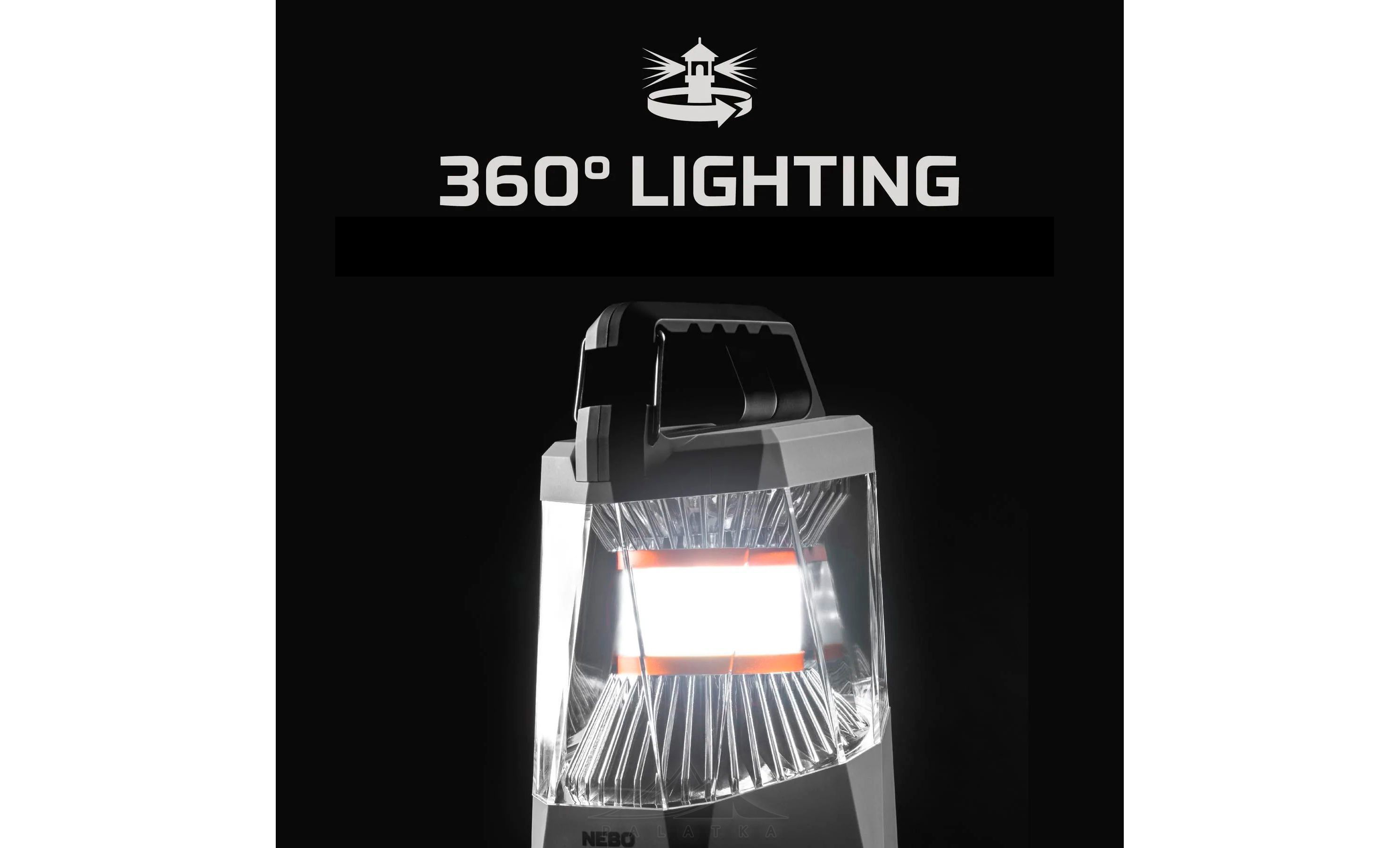 - максимальний 360 (1000 люменів): 1,5 години роботи з розсіюванням світла на 360° на відстань до 21 метр;