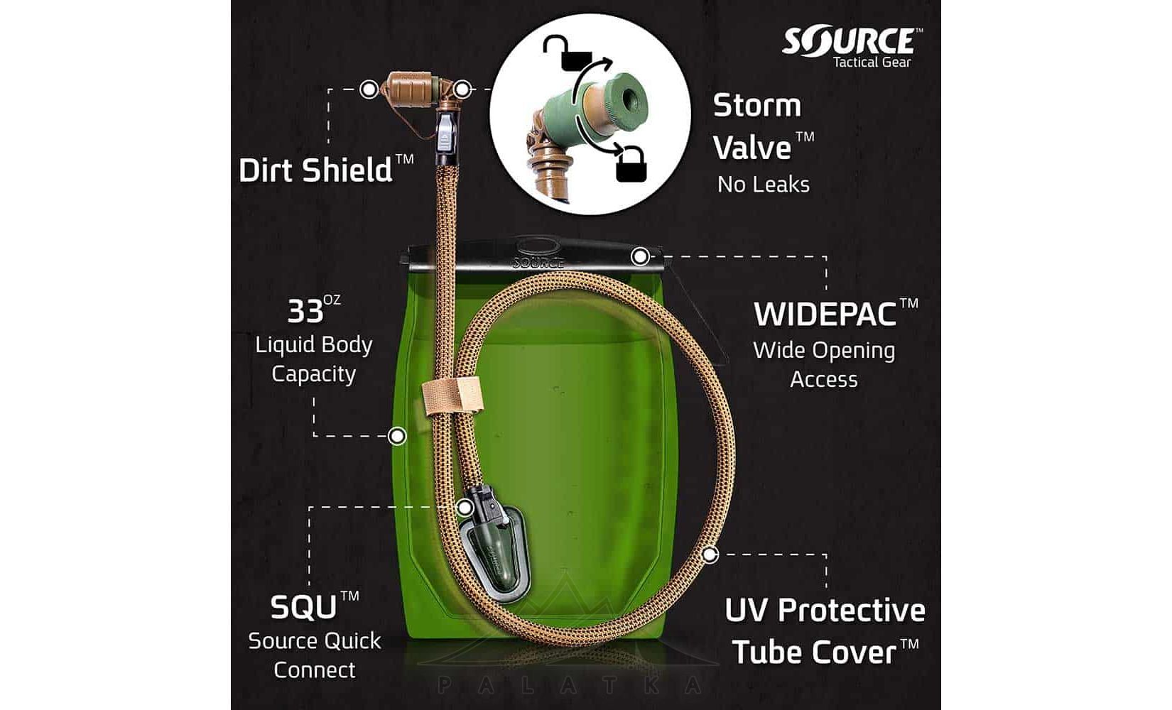 Гідратор Source Kangaroo Canteen — це питна система, яка дозволяє пити на ходу, не зупиняючись. А також може використовуватися як складна м'яка каністра для води.