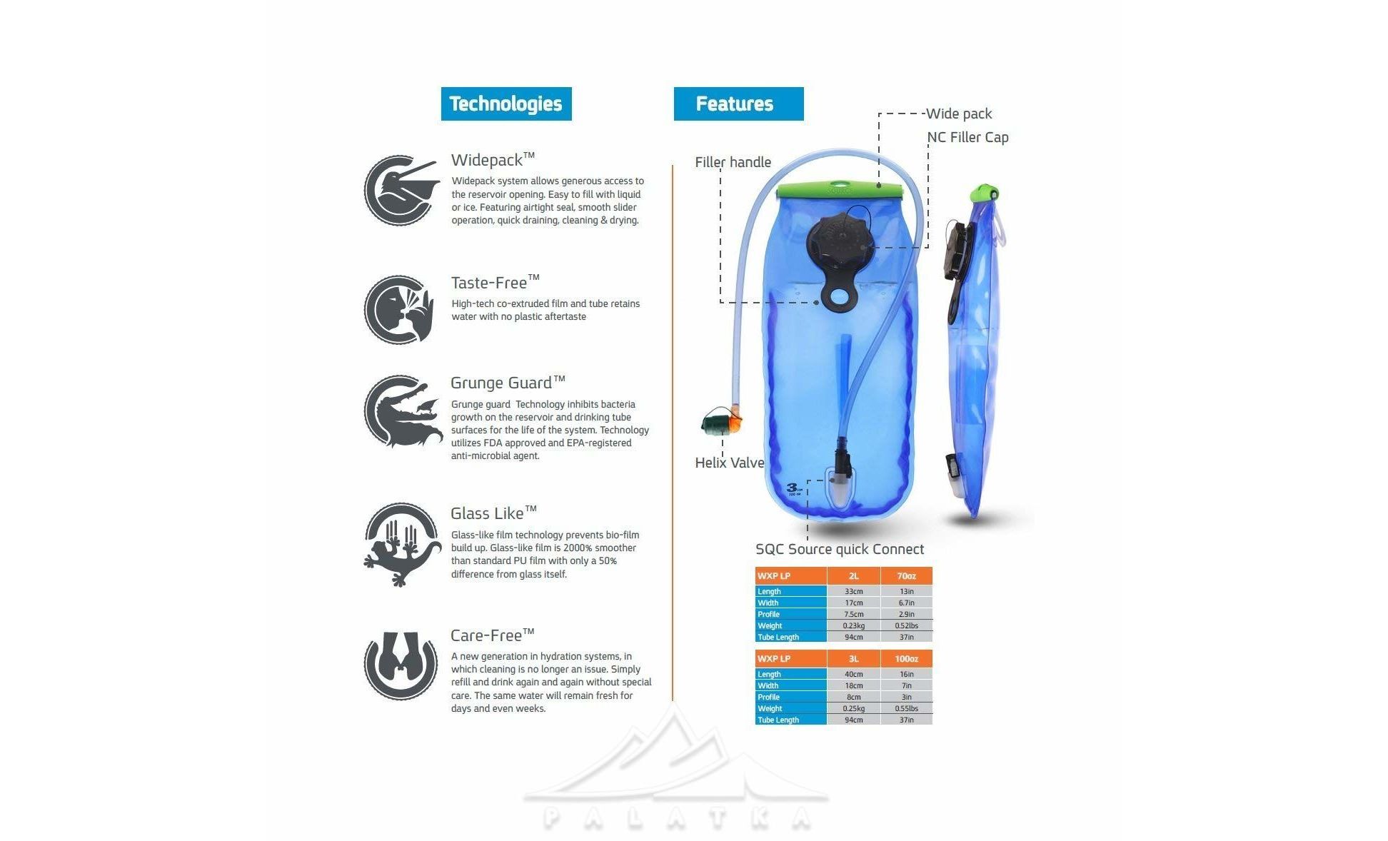 • Низький профіль робить гідратор компактнім, та дозволяє зручно вмістити у рюкзаку.