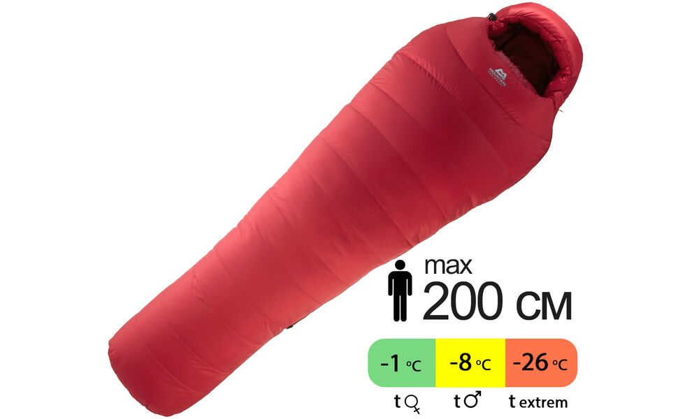 Демісезонний пуховий спальник Mountain Equipment Glacier 450 - Long (01040/Imperial Red) до -8°C: з капюшоном