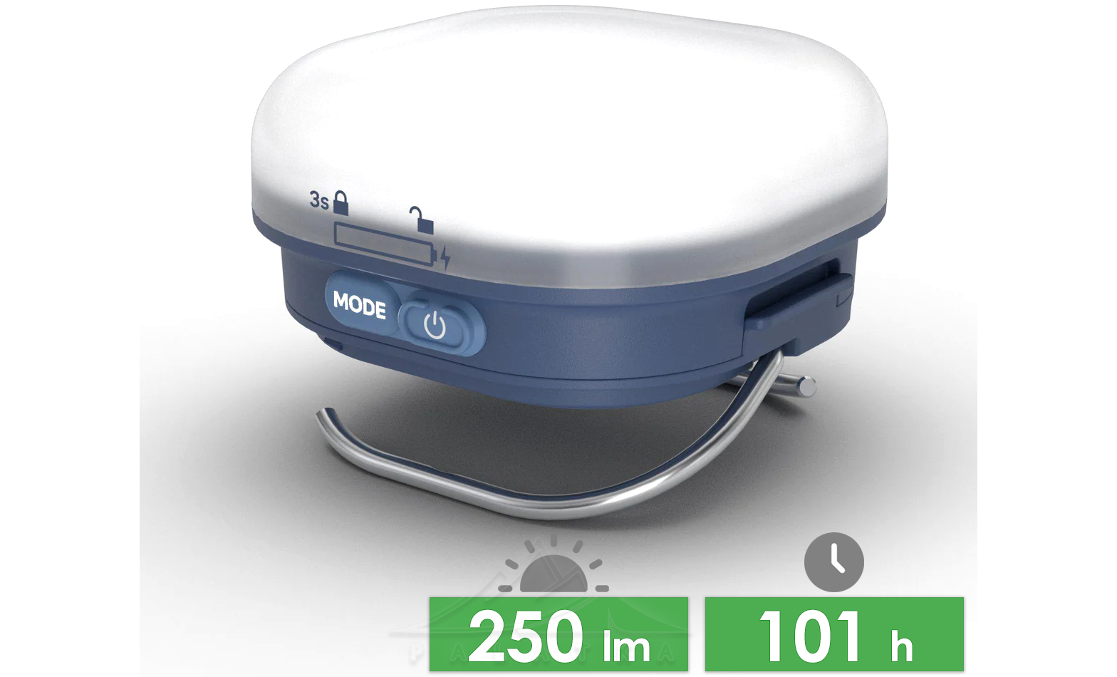 • Різні варіанти встановлення — ліхтар можна поставити на стіл чи землю, нахилити за допомогою одного гачка або підвісити за два у наметі.