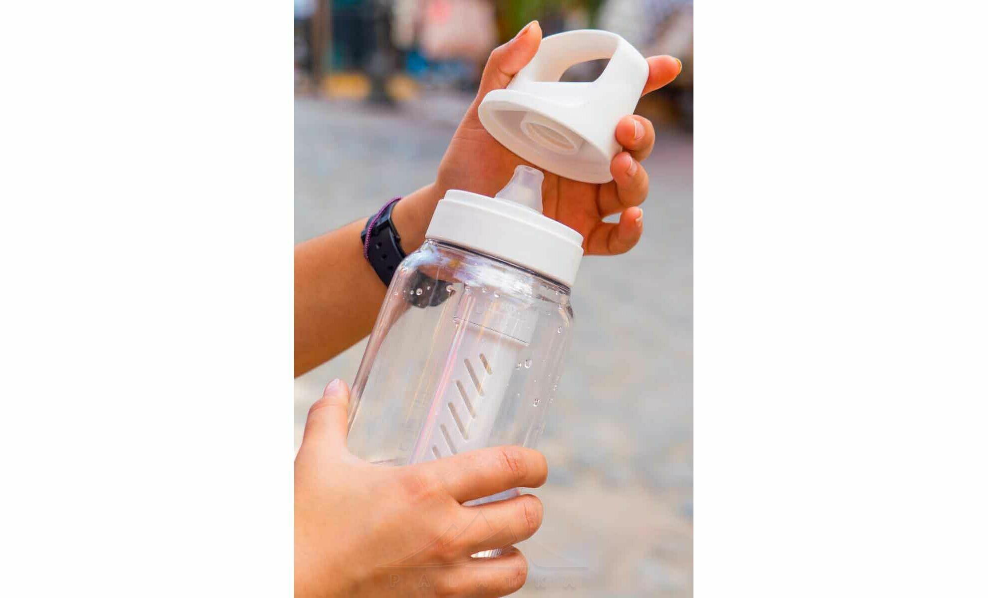 • Кришка складається з двох частин: основи і захисної частини. До снови знизу під'єднується фільтруючий елемент, а зверху додано знімний носик для пиття. Захисна частина запобігає забрудненню носика для пиття, герметично закриває його та містить зручну ручку для перенесення пляшки.