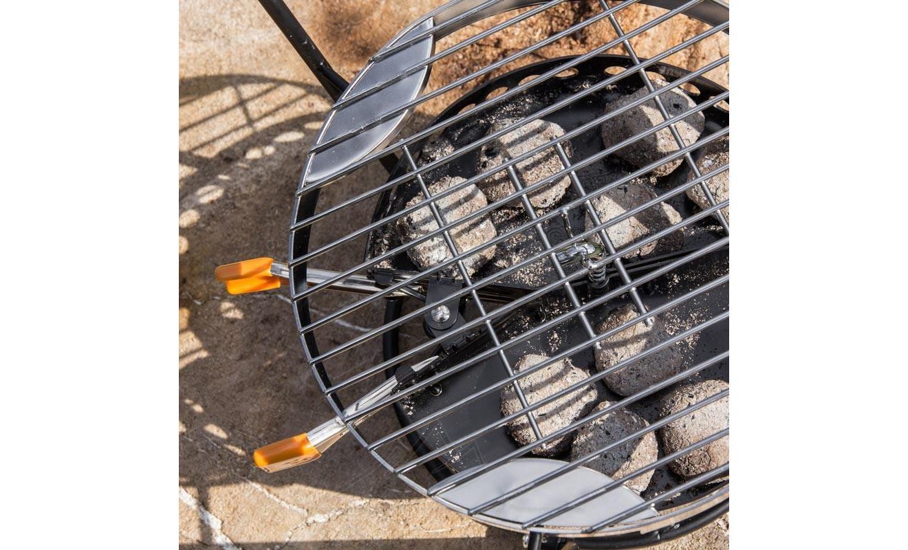- Перед використанням рекомендується: зняти з фіксатора гумові насадки на ніжках для запобігання їх розплавлення та попередньо розпалити вугілля у багатті.