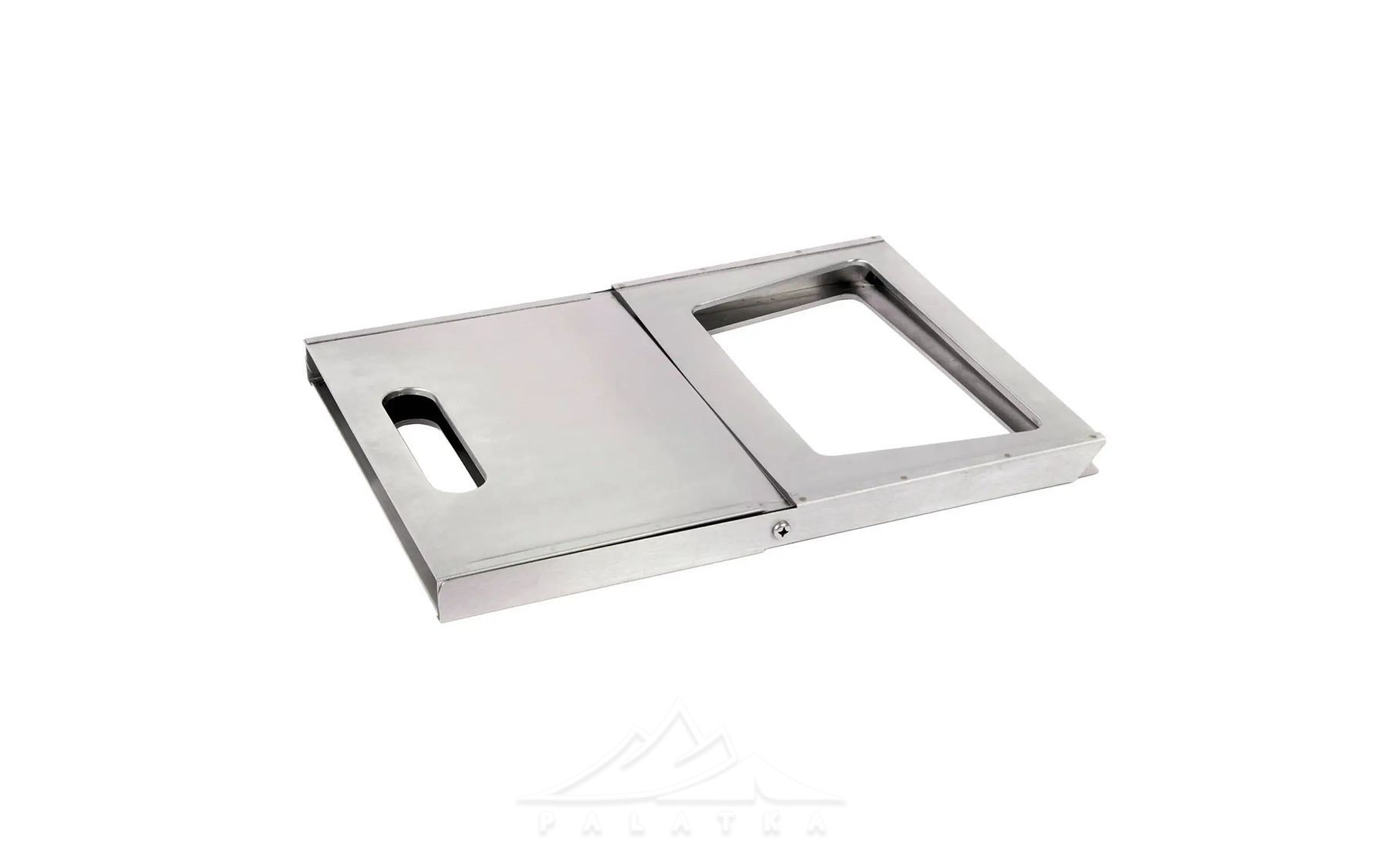 - Гнучка конструкція — можна скласти бічну стінку та підкласти дрова під час приготування.