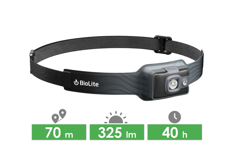 BioLite Headlamp 325 — ультралегкий налобний ліхтар з перезарядкою, зручною посадкою, та різноманітними режимами. Універсальна модель для повсякденного використання, для бігу, велоспорту, та подорожей.