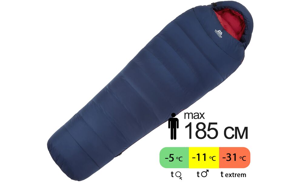 Демісезонний пуховий спальник Mountain Equipment Helium 600 - Wmns Long (01596/Medieval Blue) до -11°C: з капюшоном