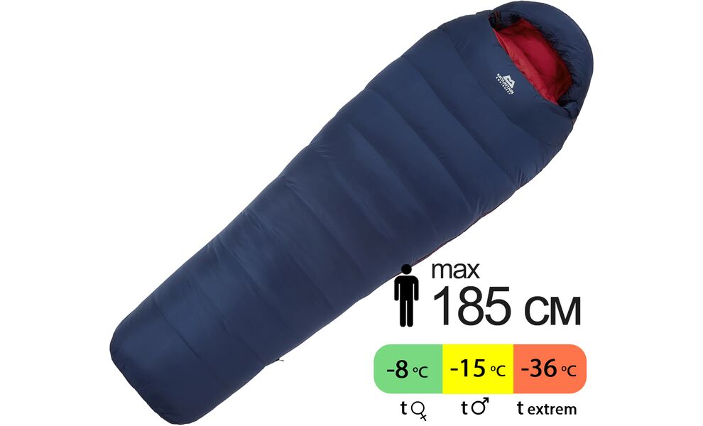 Зимовий пуховий спальник Mountain Equipment Helium 800 - Wmns Long (01596/Medieval Blue) до -15°C: з капюшоном