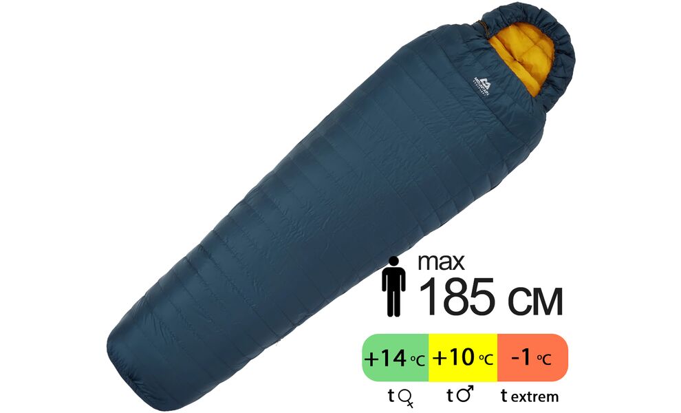 Літній пуховий спальник Mountain Equipment Helium Solo - Regular (01635/Majolica Blue) до 10°C: з капюшоном