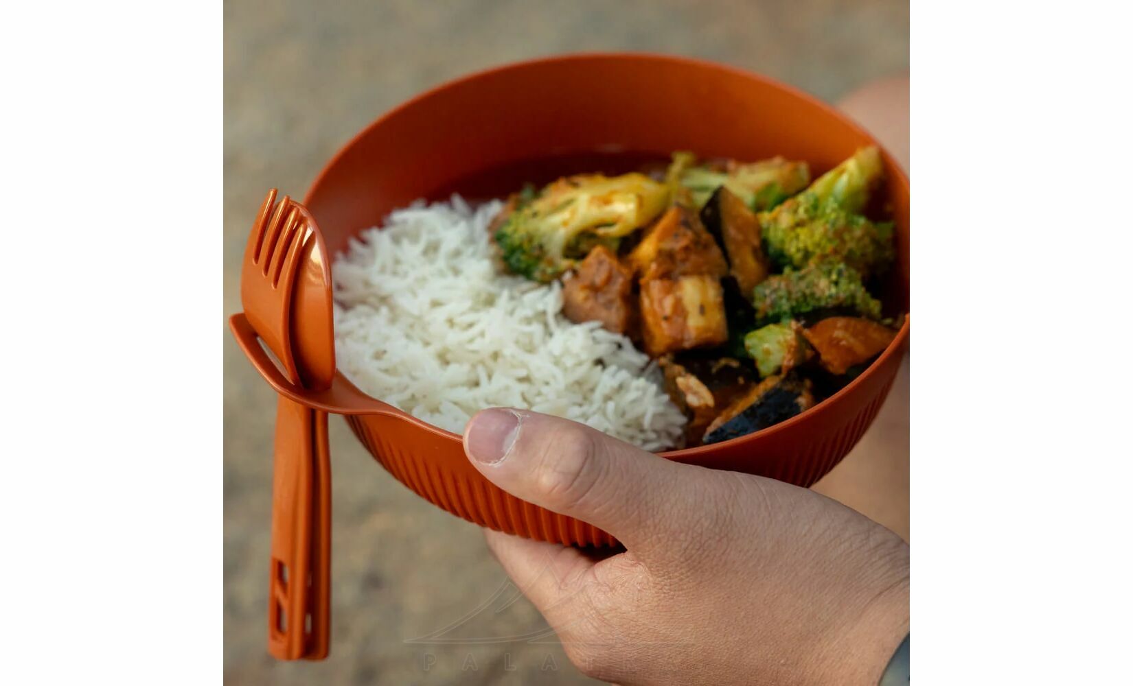 • Формована зона хвата під великий палець допомагає надійніше тримати миску в руці, що особливо зручно на природі, коли їсте не за столом, а прямо в таборі або на ходу.