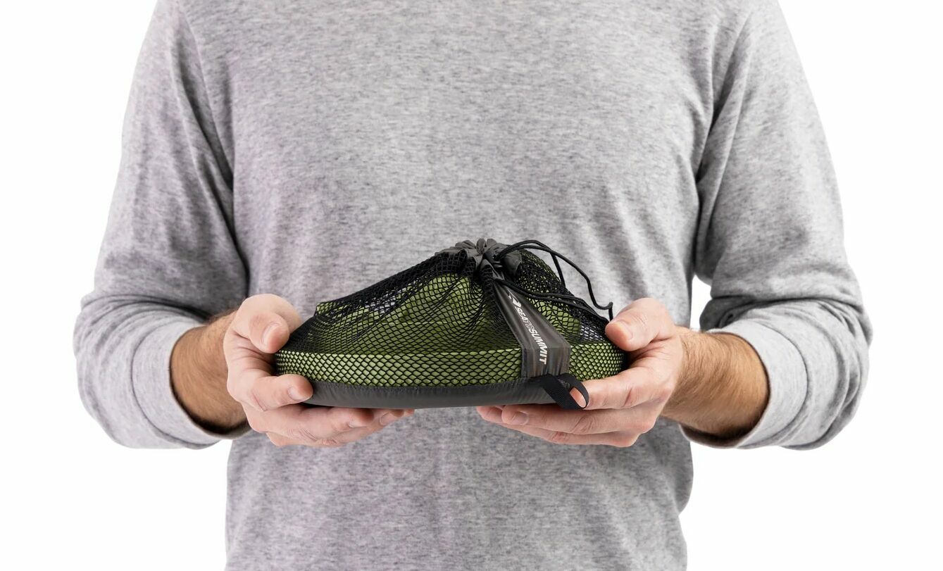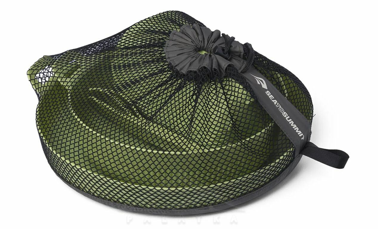 - Сітчастий мішок допомагає тримати весь комплект разом і дає посуду швидше висохнути після миття, що особливо практично в кемпінгу.