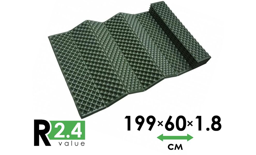 • R-value 2,4 дає змогу використовувати каремат самостійно в демісезонні пори року, або в більш холодні пори роки як підкладку під надувний килимок чи самонадувний килимок для додаткового утеплення.