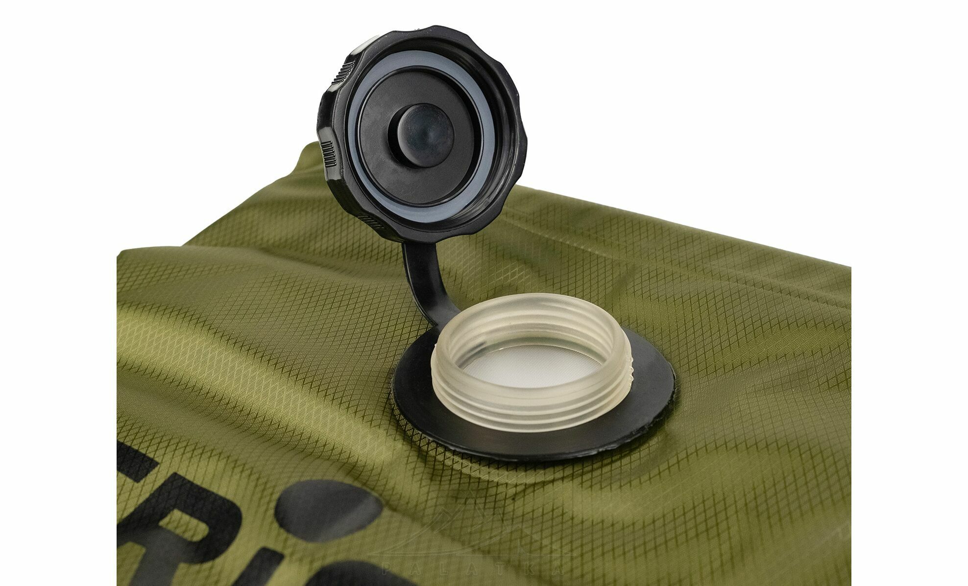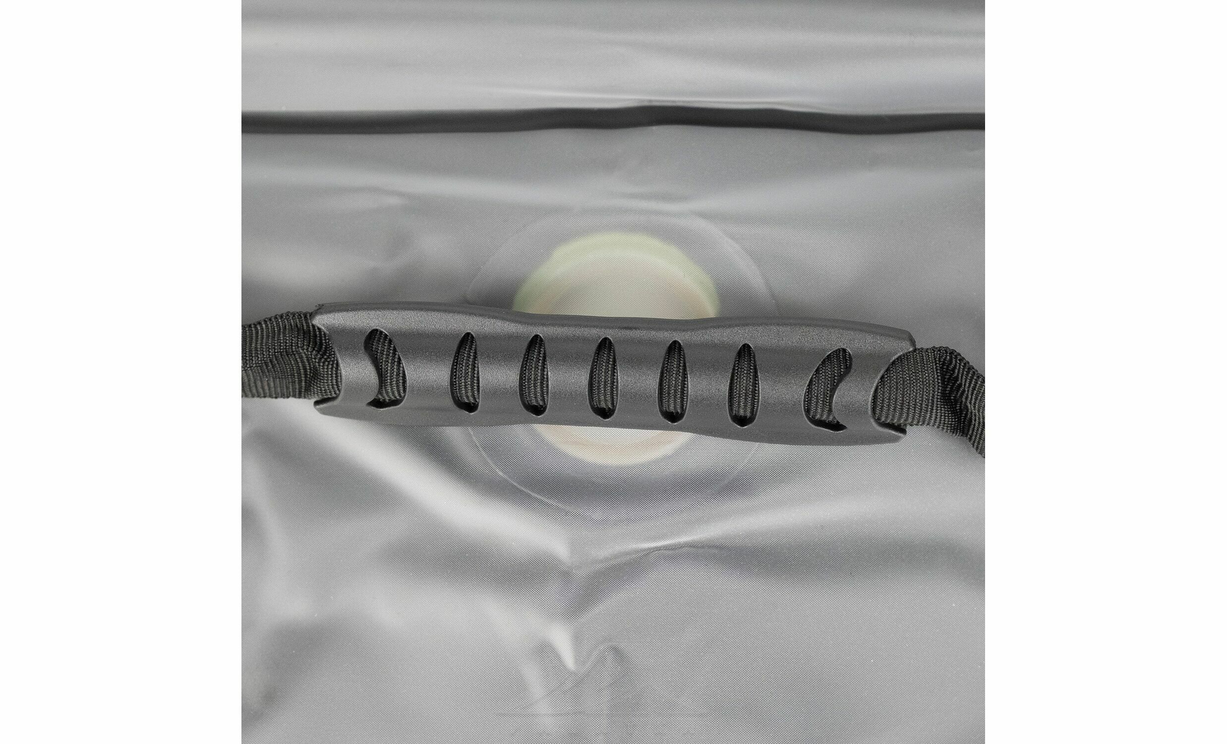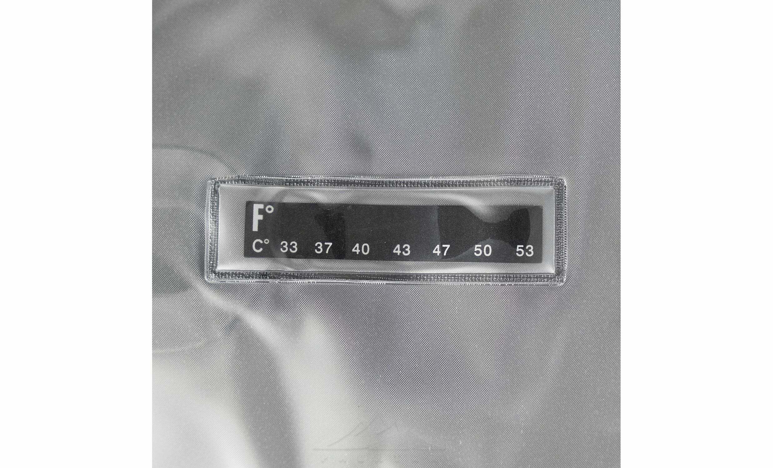 Ємність для душу Tribe Shower виготовлено з міцного ПВХ посиленого армованим плетінням Ripstop. Для закріплення ємність обладнано стропою з ручкою, з однієї сторони якої розміщено фастекс. Одна зі сторін прозора, що дозволяє оцінювати залишковий рівень води. Внутрішня частина іншої сторони – чорна, що пришвидшує нагрівання води на сонці. На прозорій стороні ємності розміщено термометр для відслідковування приблизної температури води. Кришку від горловини прикріплено до ємності, що робить процес заливання води комфортнішим. У комплекті постачається шланг з розпилювачем, який обладнано краном.