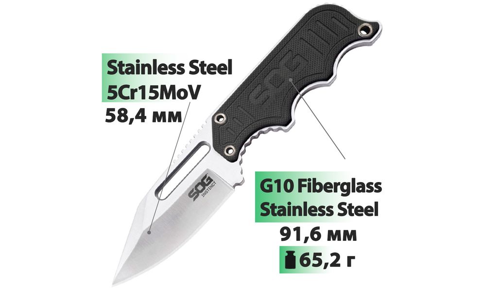 Ніж SOG Instinct - G10 — зручний ніж, з фіксованим лезом підійде для побутових робіт, кемпінгу та тактичних задач.