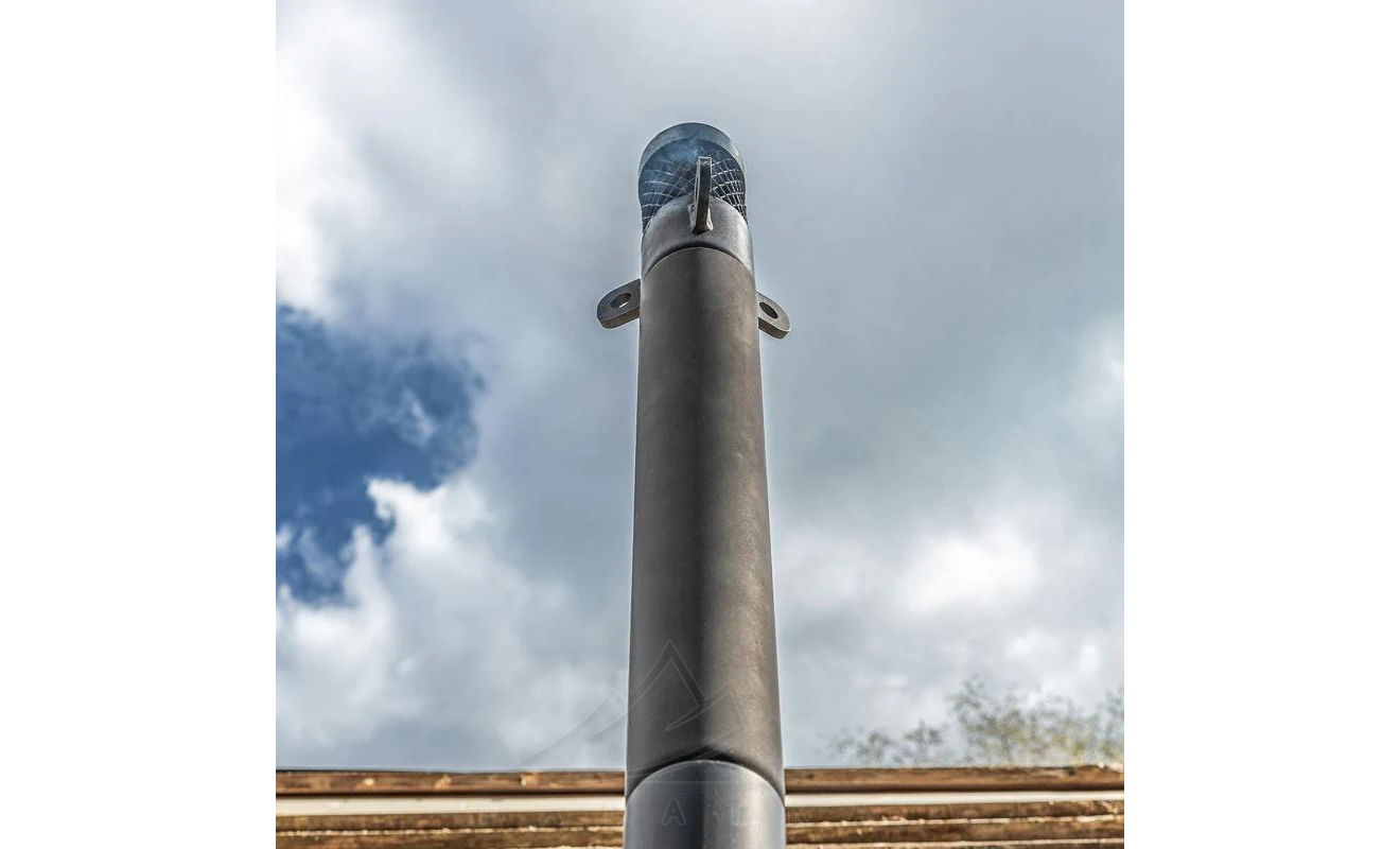 - За допомогою металевих петель димар можна закріпити відтяжками для захисту в разі погіршення погодних умов.