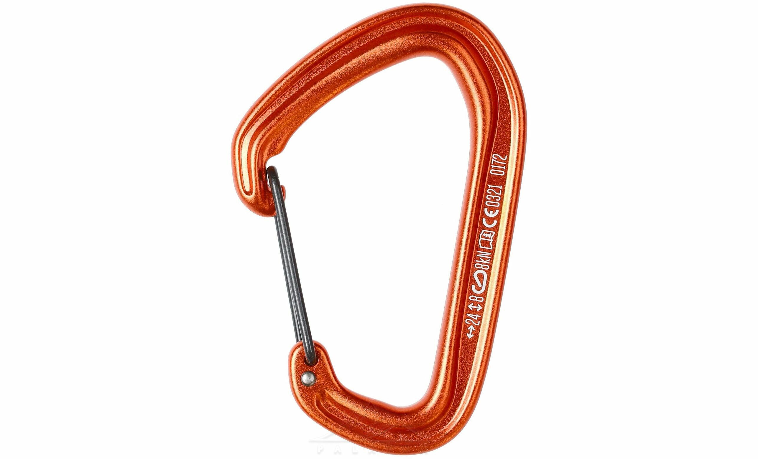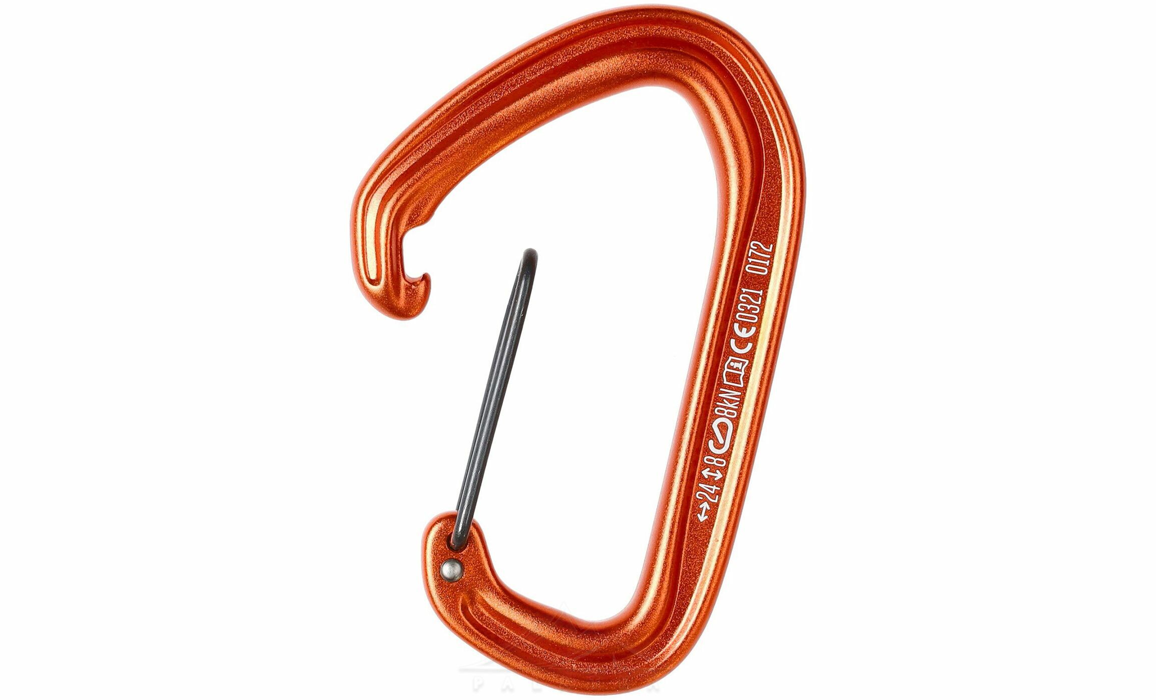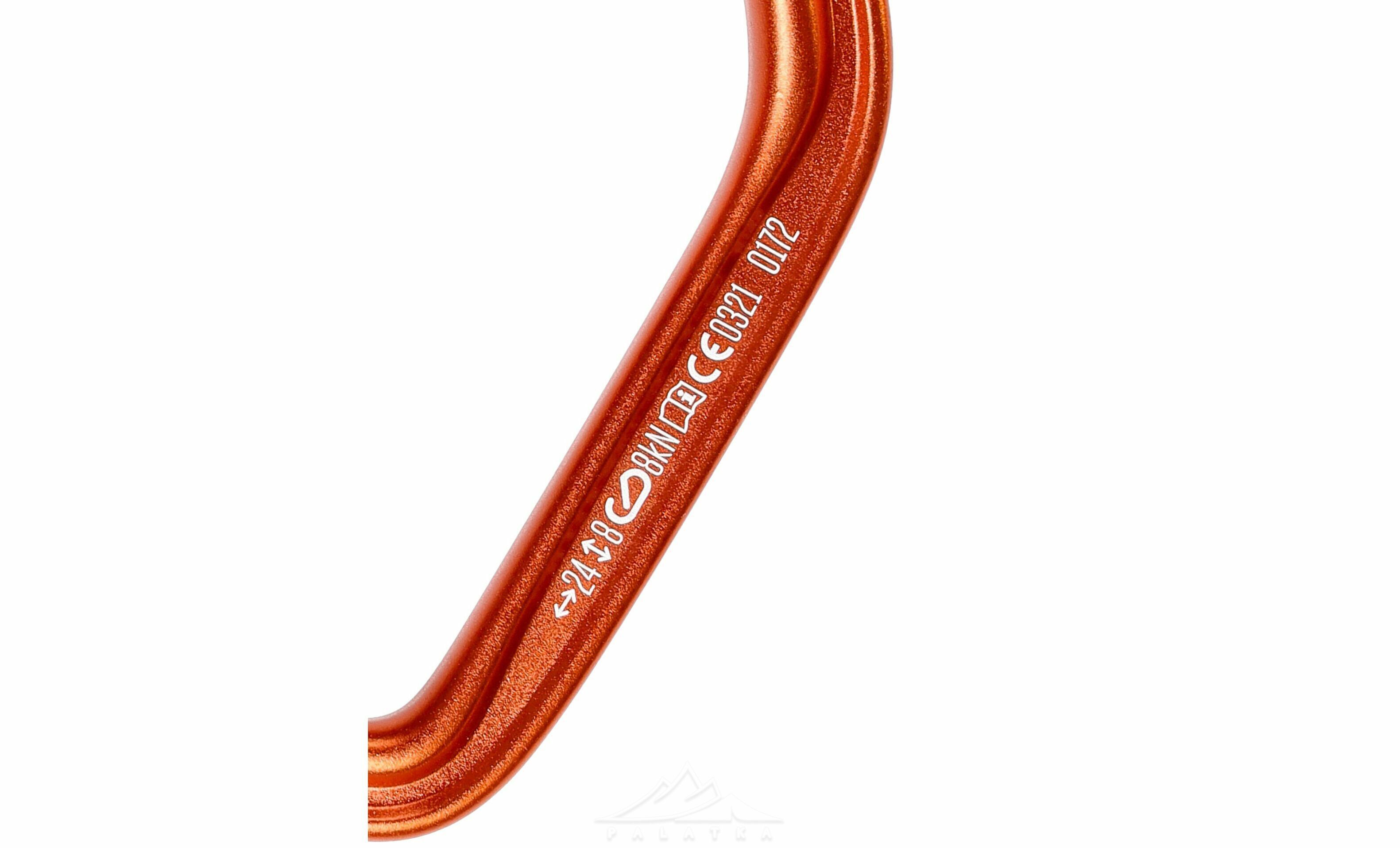 - D-образна форма забезпечує оптимальне навантаження, без створення тиску на защіпку, що підвищує міцність карабіна.