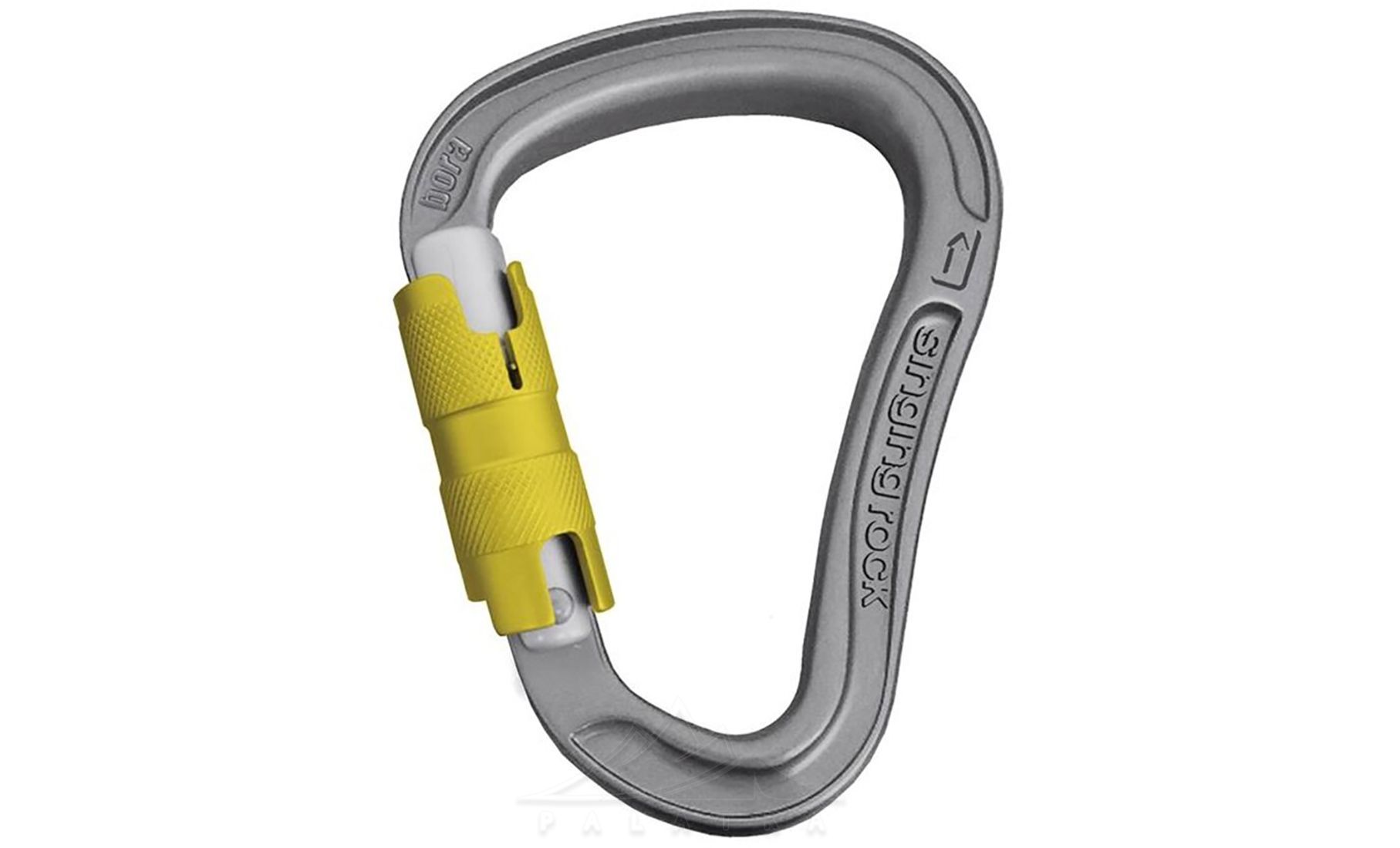 Карабін Singing Rock Bora TWL — універсальний карабін грушовидної HMS форми з автоматичною двотактною муфтою. Сертифікований як для спортивного, так і для промислового використання.