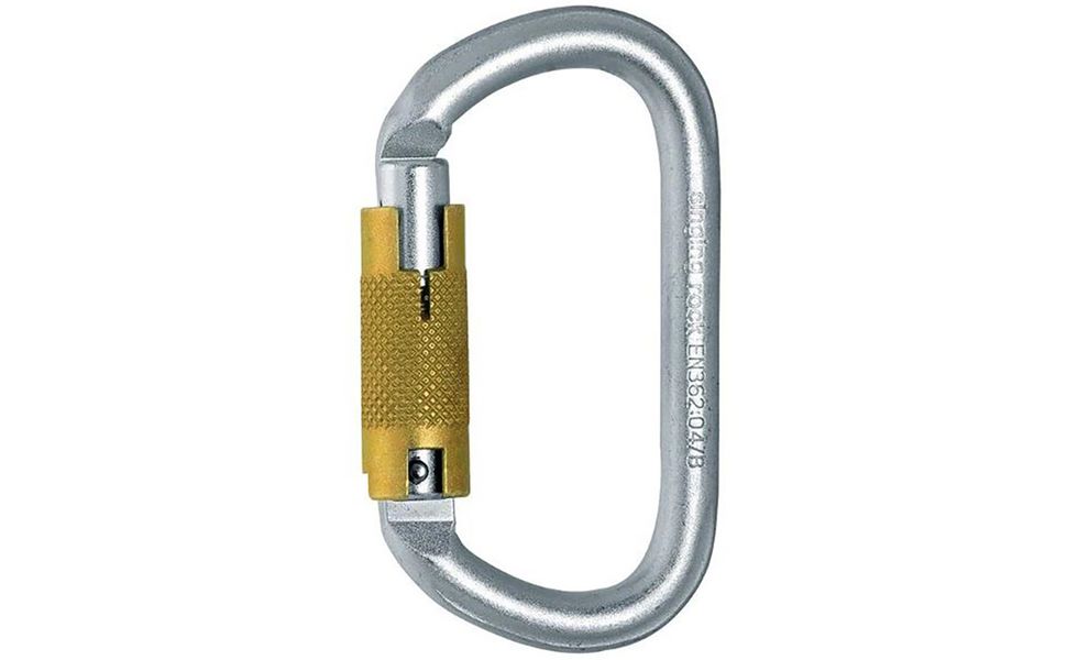 Карабін Singing Rock Oval Connector Screw — овальний сталевий карабін з тритактною муфтою. Розроблений спеціально для промислового використання, будівельних та рятувальних робіт.