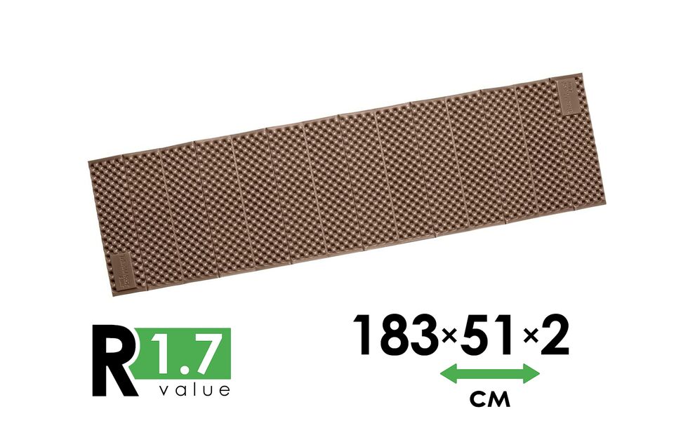 - R-Value - 1,7 — каремат рекомендовано використовувати в теплу погоду самостійно, або в більш холодні пори року як підкладку під надувний або самонадувний килимок.