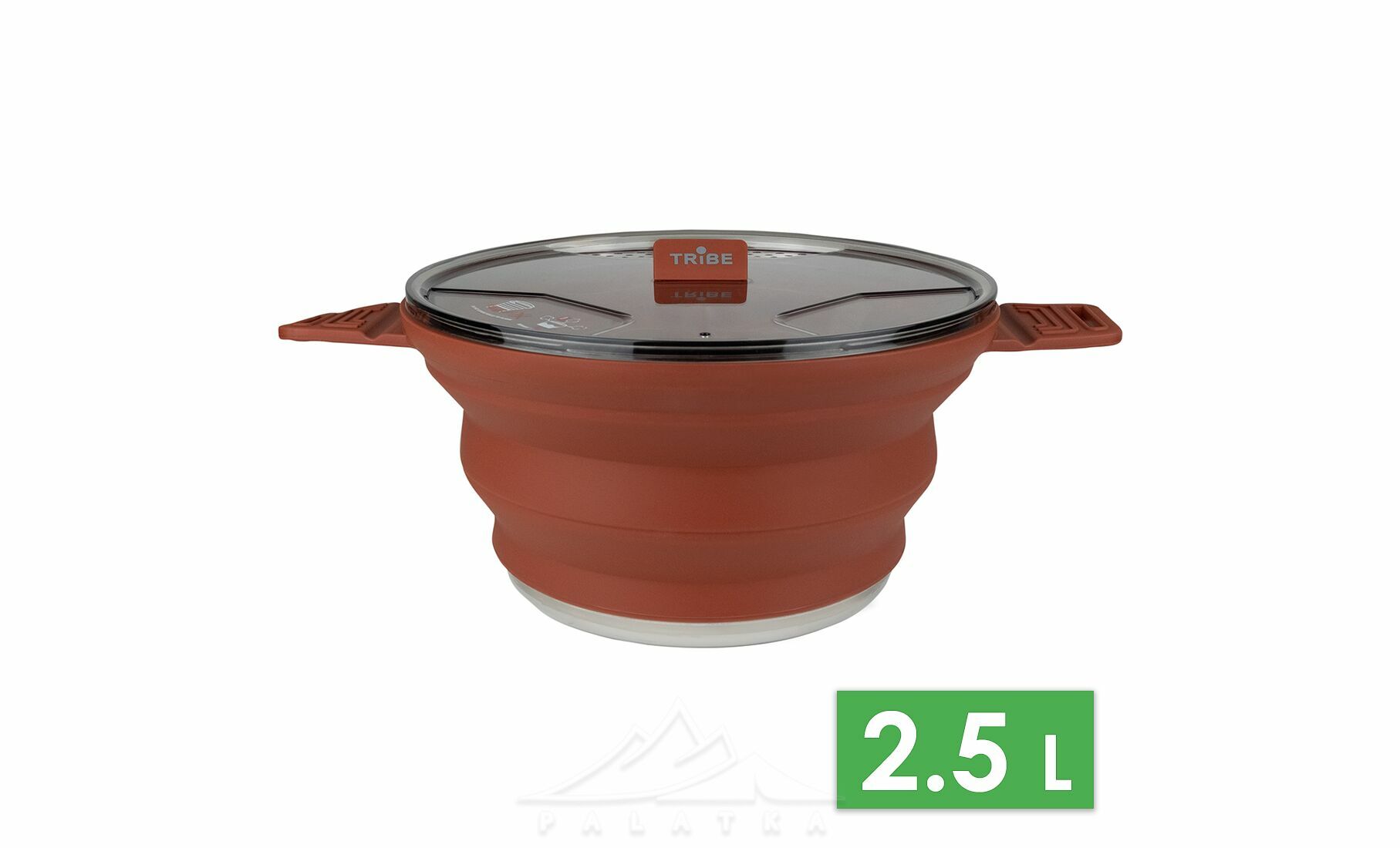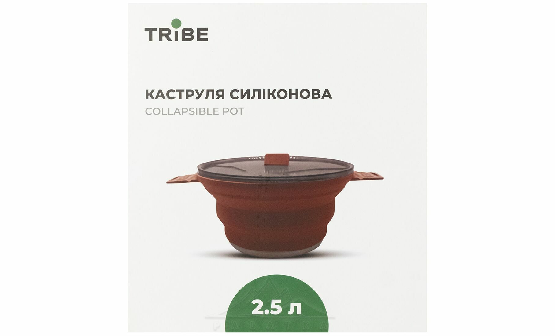 Tribe Collapsible Pot — складана каструля з гнучкого харчового силікону та міцної нержавіючої сталі для приготування їжі. Практичний вибір для походів, кемпінгу та подорожей, де важлива компактність спорядження.