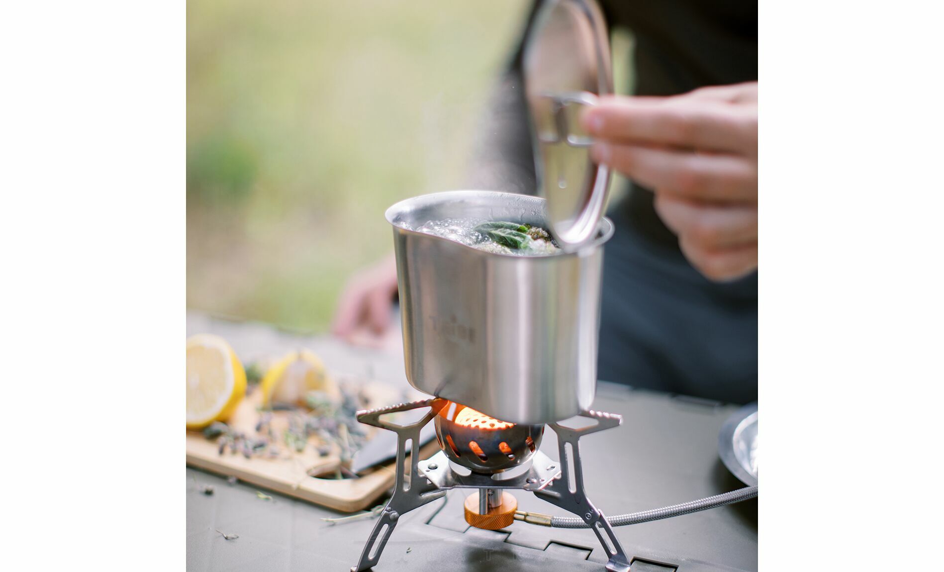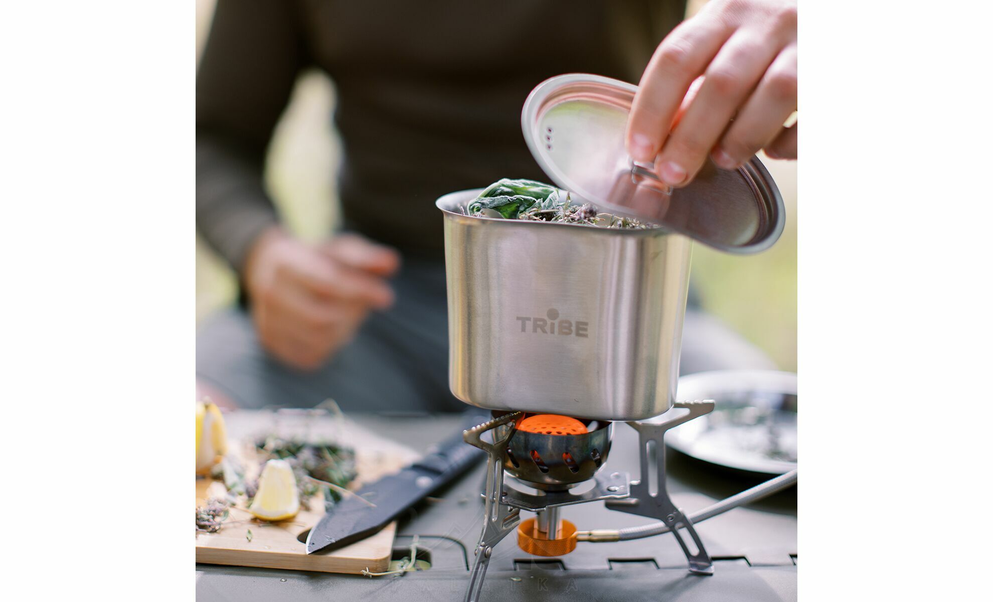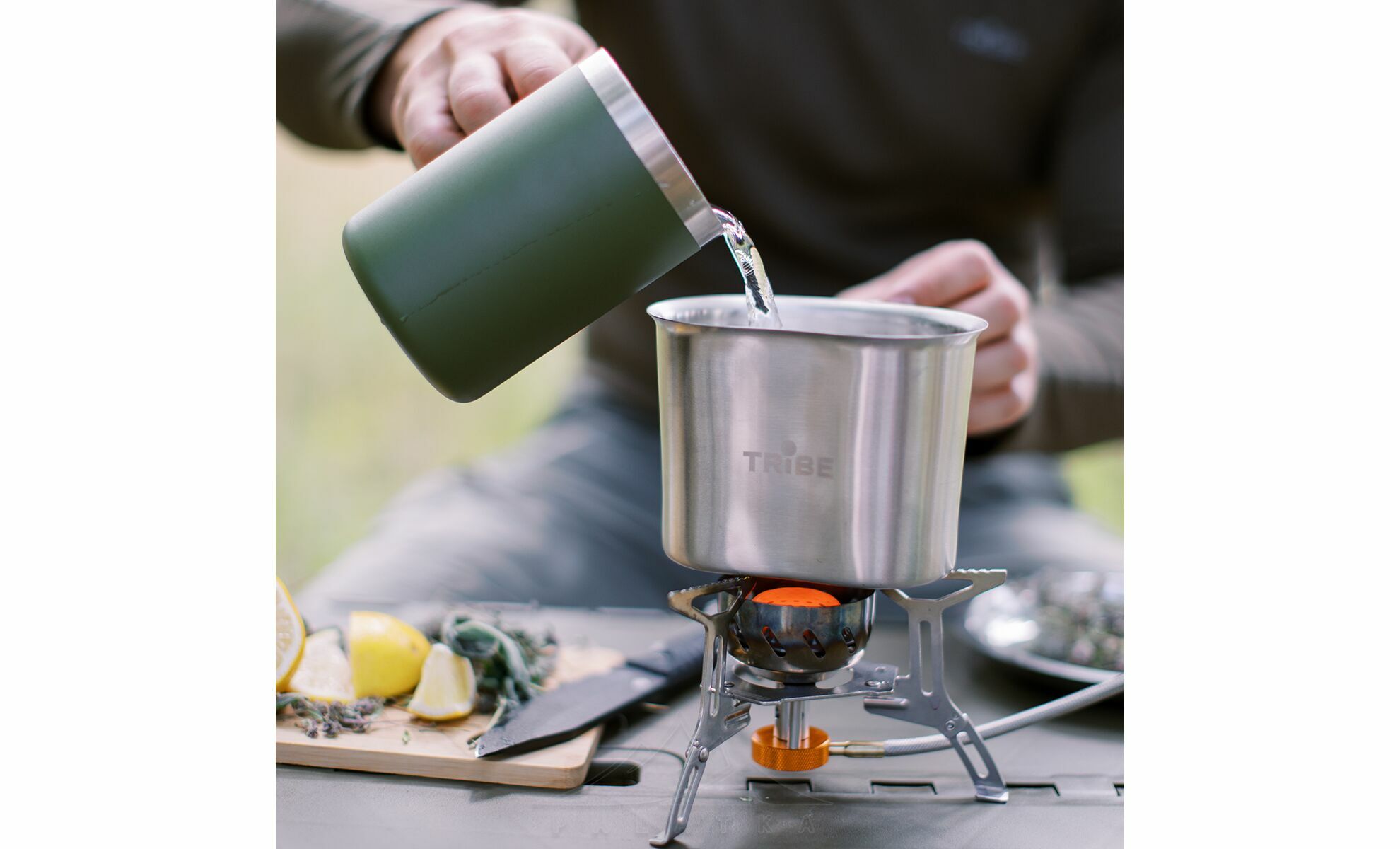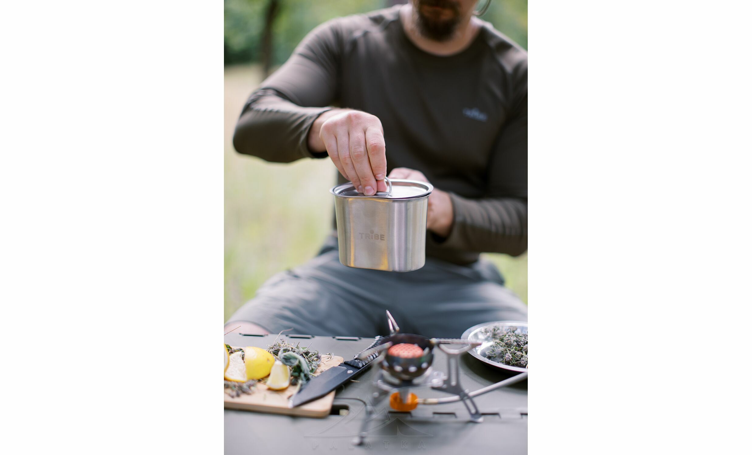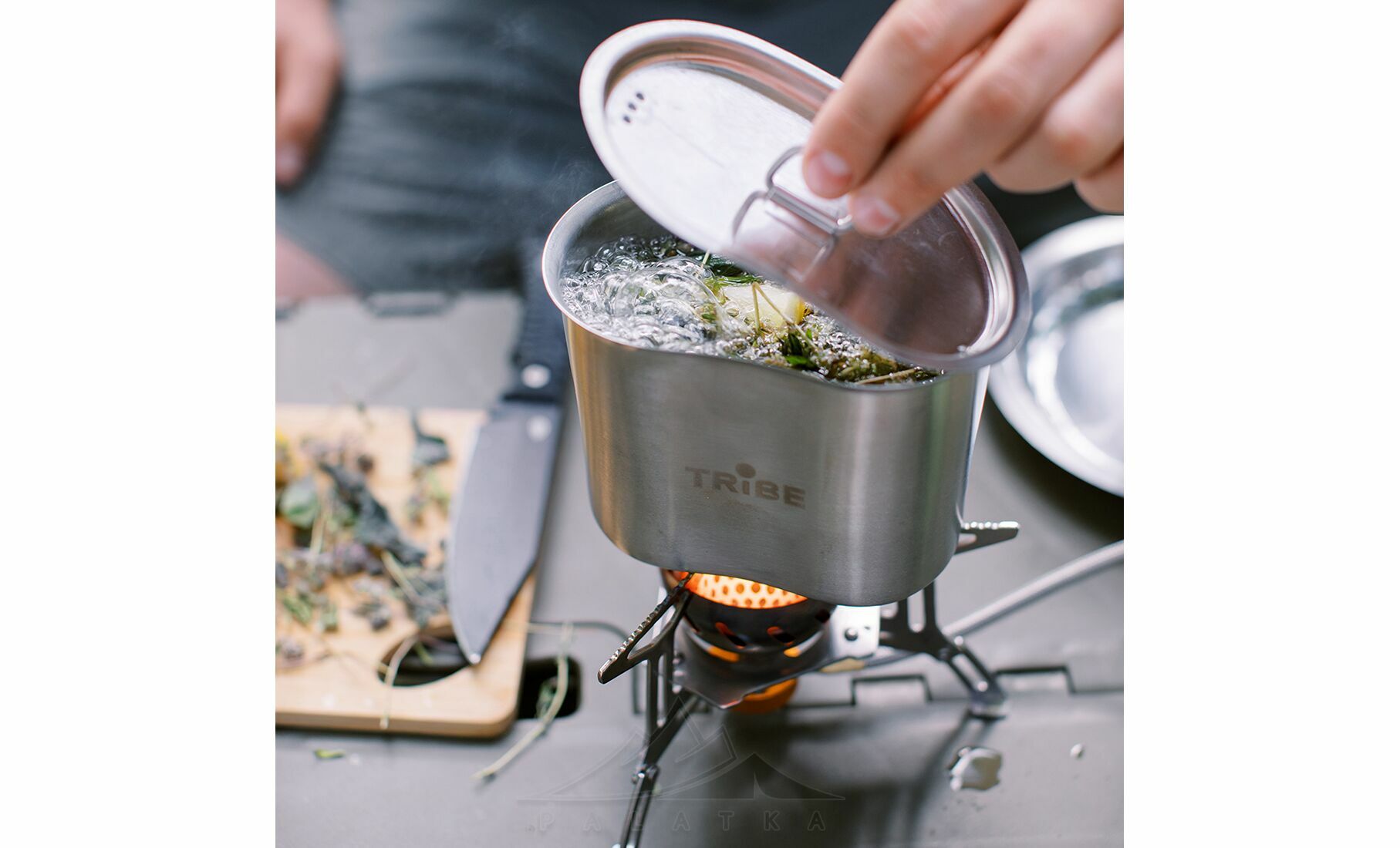 - Сумісна з флягою Tribe Canteen — каструля обгортає флягу, заощаджуючи місце.