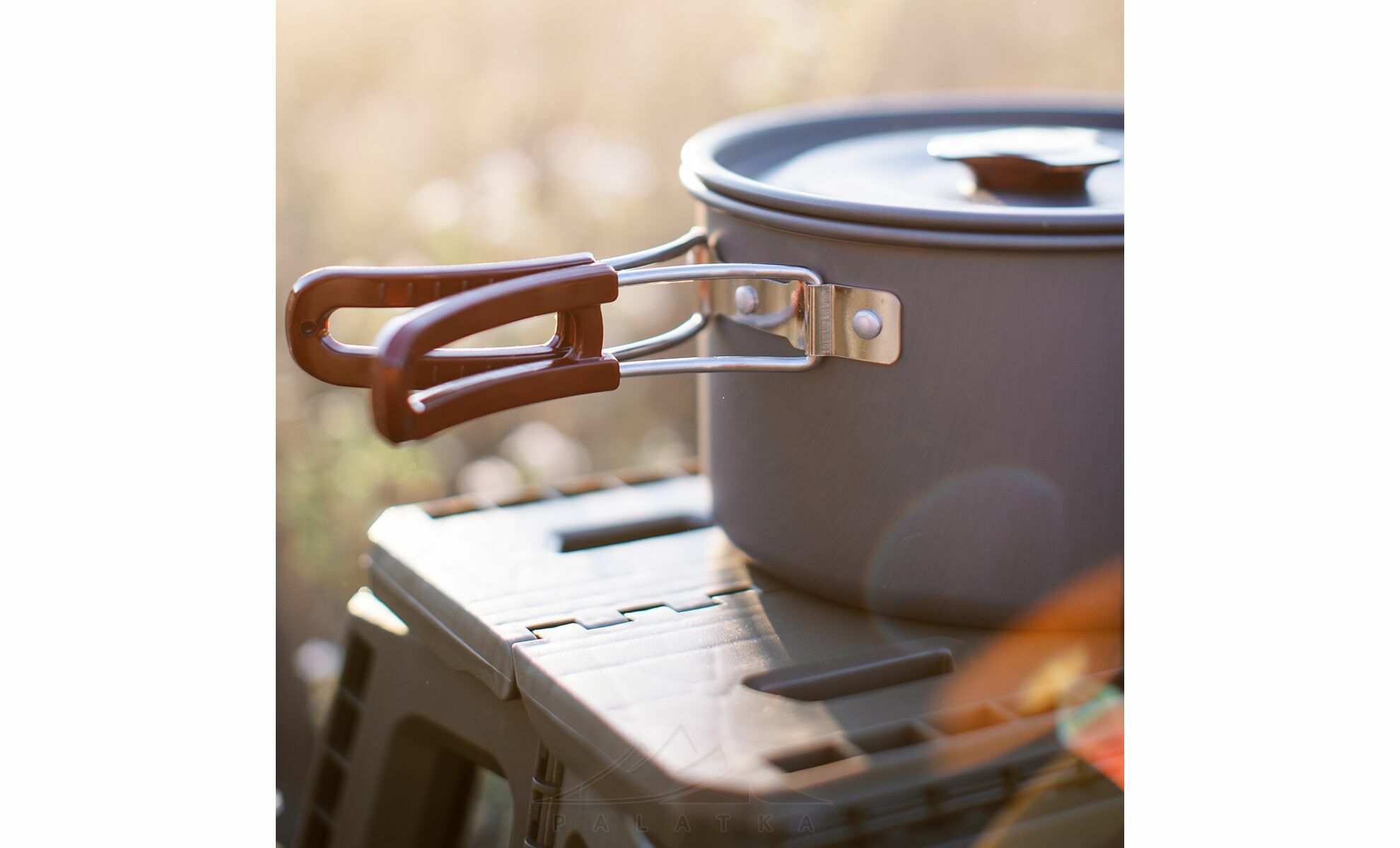 Tribe T-FH-0014 Pot Alu — легка і зручна туристична каструля з анодованого алюмінію, яка чудово підходить для готування на природі, в походах і кемпінгу. Завдяки складаним ручкам з термостійкими накладками її зручно використовувати навіть на розігрітій плиті чи пальнику. Ця каструля — ідеальний вибір для тих, хто шукає легке, надійне та функціональне кухонне спорядження для активного відпочинку.