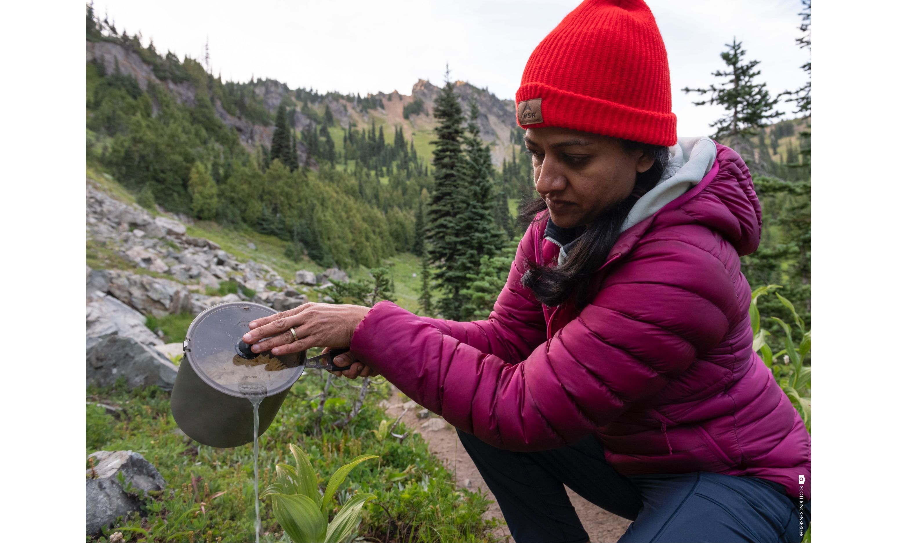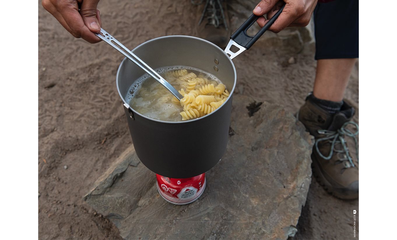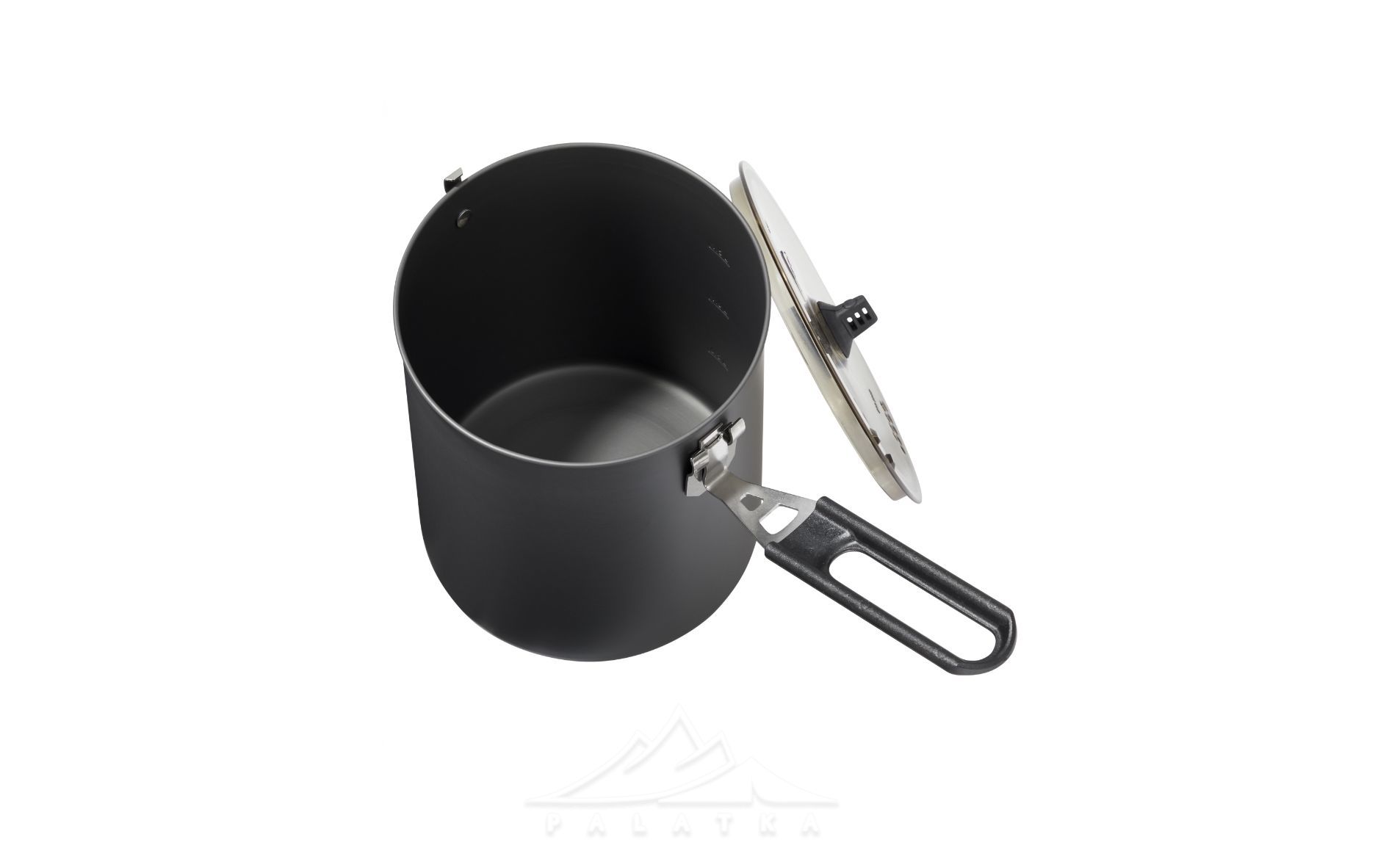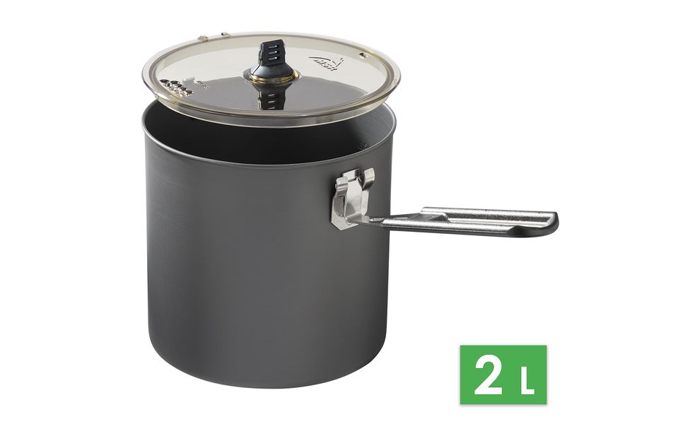 MSR Trail Lite Pot — легка та компактна алюмінієва каструля зі складною ручкою для кемпінгової кухні. Розрахована на двох осіб.