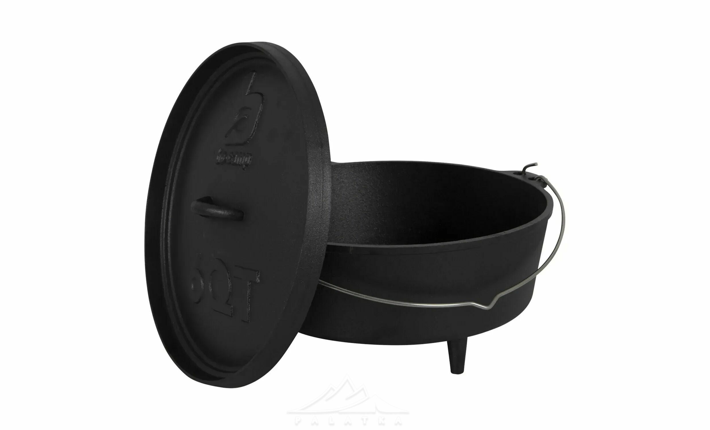 - Бічні невеликі литі ручки з чавуну для зручного перенесення, та велика міцна сталева ручка, яка дозволяє підвішувати казан над вогнищем чи закріпити його на тринозі.