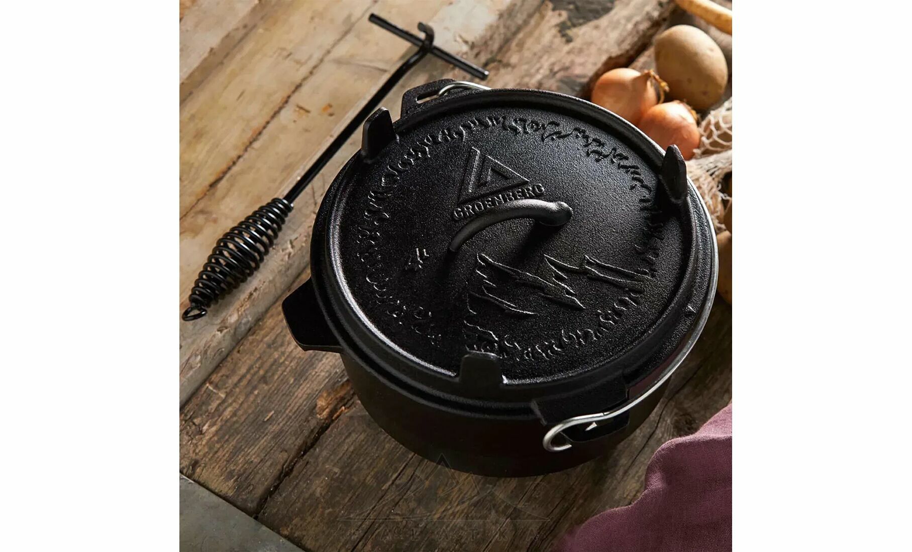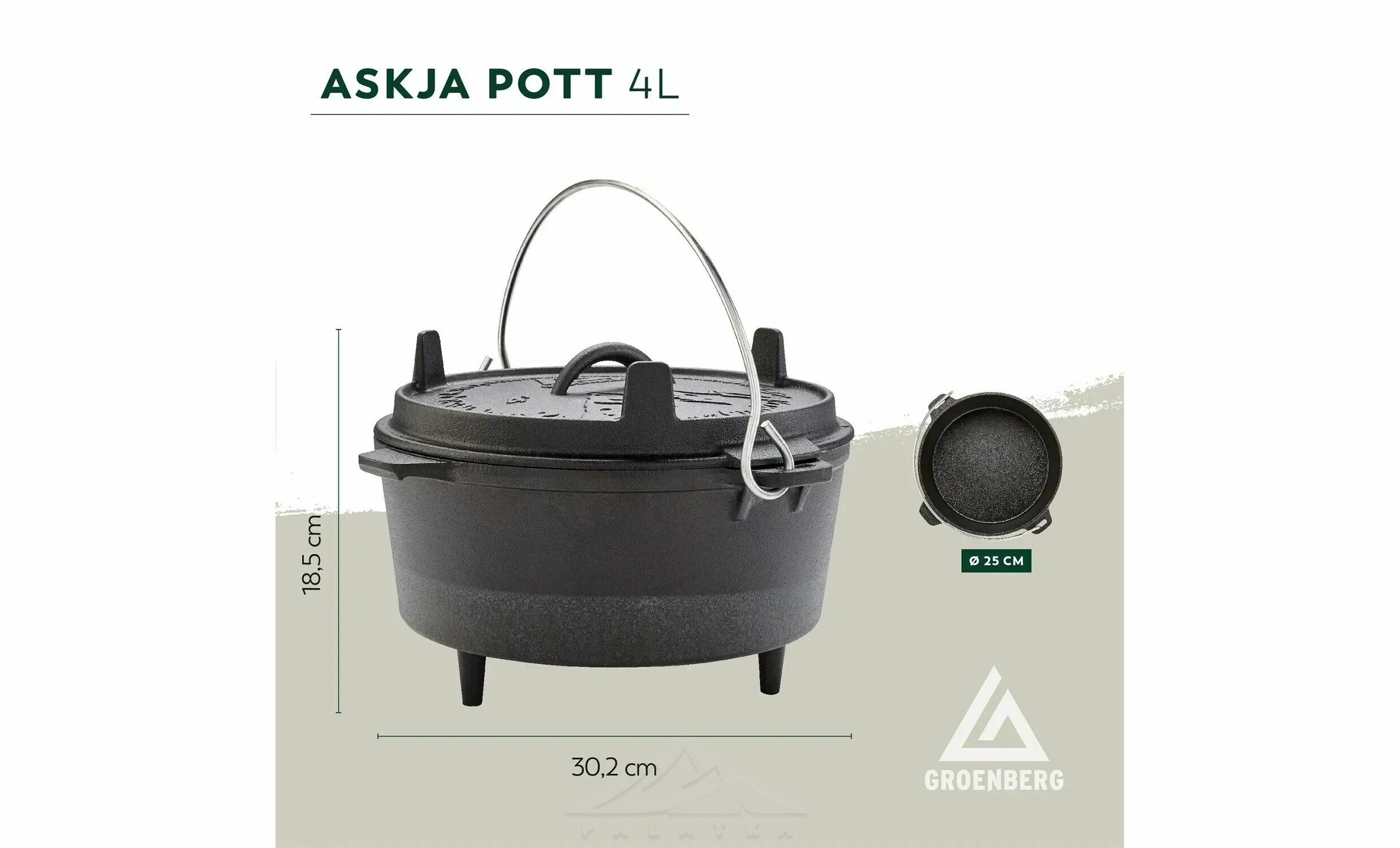 Groenberg Askja Pot — багатофункціональний казан із литого чавуну, створений для приготування їжі як на природі, так і вдома. Чудово підходить для запікання, тушкування, смаження, варіння або випічки.